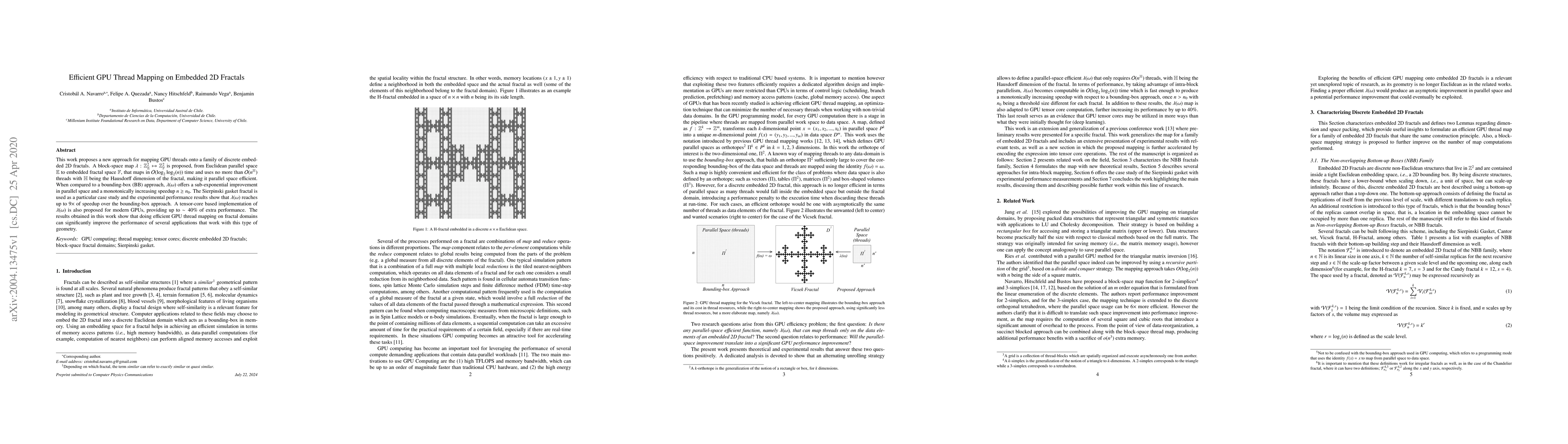 This paper introduces a novel method for efficiently mapping GPU threads onto embedded 2D fractals, achieving significant speedups over traditional bounding-box approaches. The proposed block-space map $\lambda$ offers sub-exponential improvement and a tensor-core based implementation provides additional performance gains.