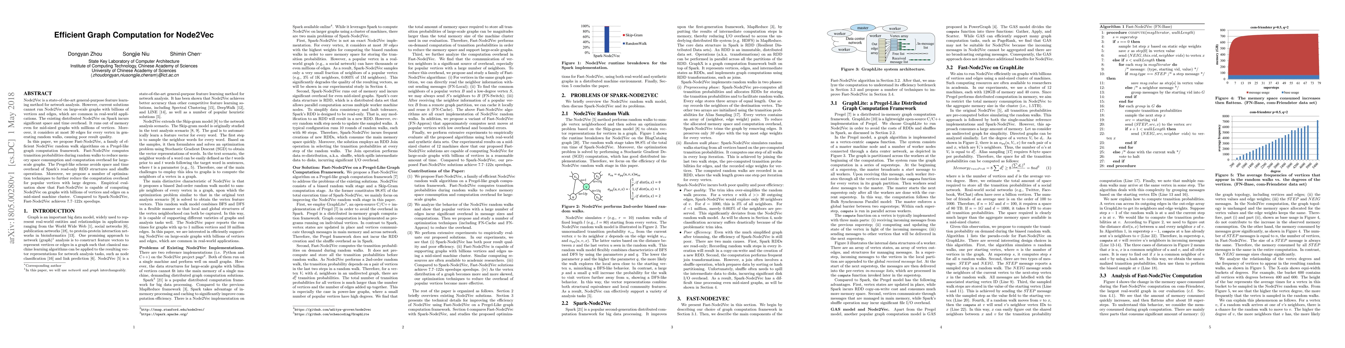 This paper introduces Fast-Node2Vec, an efficient Node2Vec algorithm for large-scale graph computation on a Pregel-like framework, addressing memory and time overhead issues. Fast-Node2Vec achieves significant speedups (7.7--122x) compared to Spark-Node2Vec, enabling computation on graphs with billions of vertices and edges.
