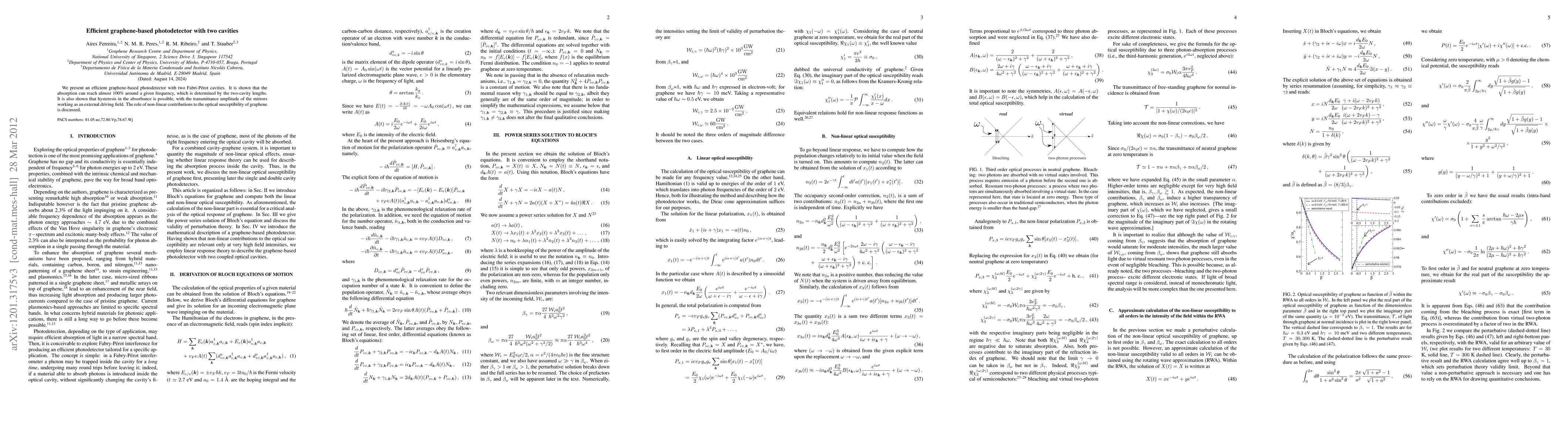 Researchers created an efficient graphene-based photodetector with two cavities that can achieve near 100% absorption at a specific frequency, and demonstrated hysteresis in absorbance.