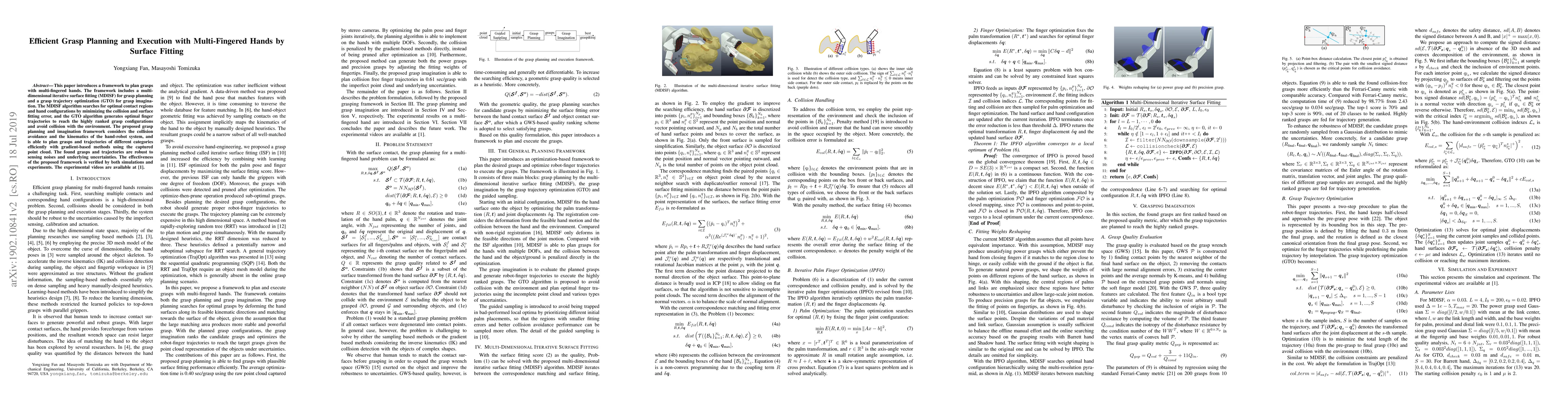 This paper presents a framework for efficient grasp planning and execution using multi-fingered hands, employing multi-dimensional iterative surface fitting and grasp trajectory optimization to minimize errors and avoid collisions. The framework is validated through simulations and experiments, demonstrating robustness to sensing noise and uncertainties.