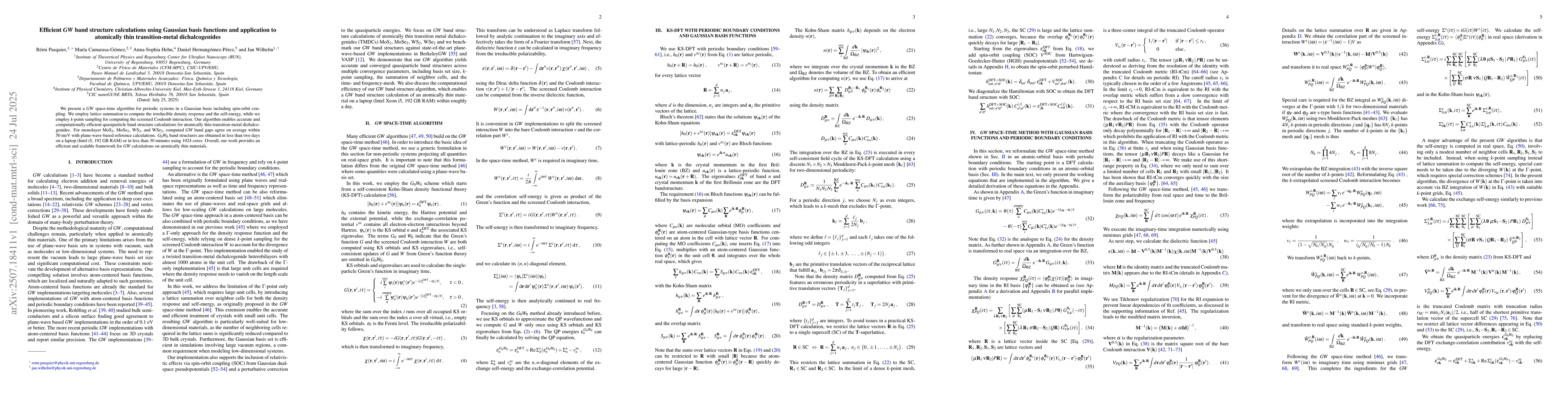We present a $GW$ space-time algorithm for periodic systems in a Gaussian basis including spin-orbit coupling. We employ lattice summation to compute the irreducible density response and the self-energy, while we employ $k$-point sampling for computing the screened Coulomb interaction. Our algorithm enables accurate and computationally efficient quasiparticle band structure calculations for atomically thin transition-metal dichalcogenides. For monolayer MoS$_\text{2}$, MoSe$_\text{2}$, WS$_\text{2}$, and WSe$_\text{2}$, computed $GW$ band gaps agree on average within 50~meV with plane-wave-based reference calculations. $G_0W_0$ band structures are obtained in less than two days on a laptop (Intel i5, 192 GB RAM) or in less than 30 minutes using 1024 cores. Overall, our work provides an efficient and scalable framework for $GW$ calculations on atomically thin materials.