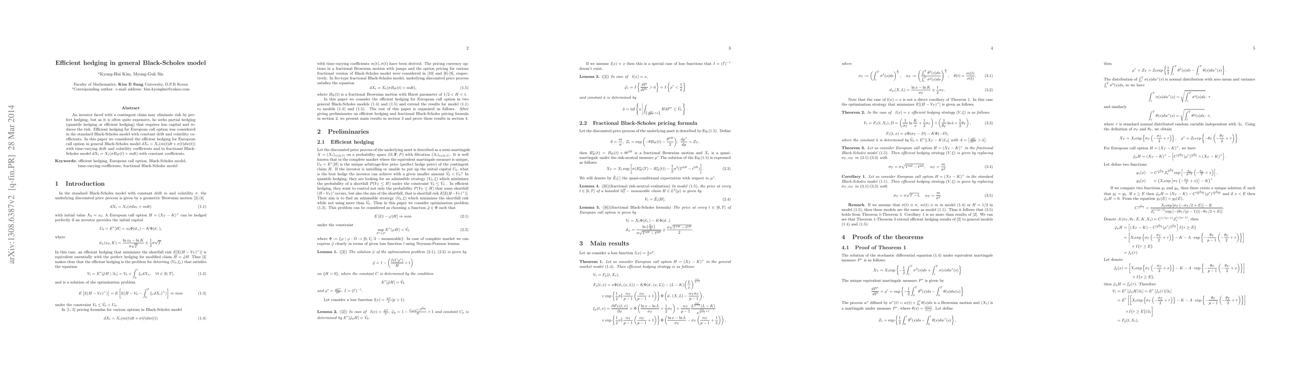 An investor faced with a contingent claim may eliminate risk by perfect hedging, but as it is often quite expensive, he seeks partial hedging (quantile hedging or efficient hedging) that requires less capital and reduces the risk. Efficient hedging for European call option was considered in the standard Black-Scholes model with constant drift and volatility coefficients. In this paper we considered the efficient hedging for European call option in general Black-Scholes model $dX_t=X_t(m(t)dt+\sigma (t)dw(t))$ with time-varying drift and volatility coefficients and in fractional Black-Scholes model $dX_t=X_t(\sigma B_H(t)+mdt)$ with constant coefficients.