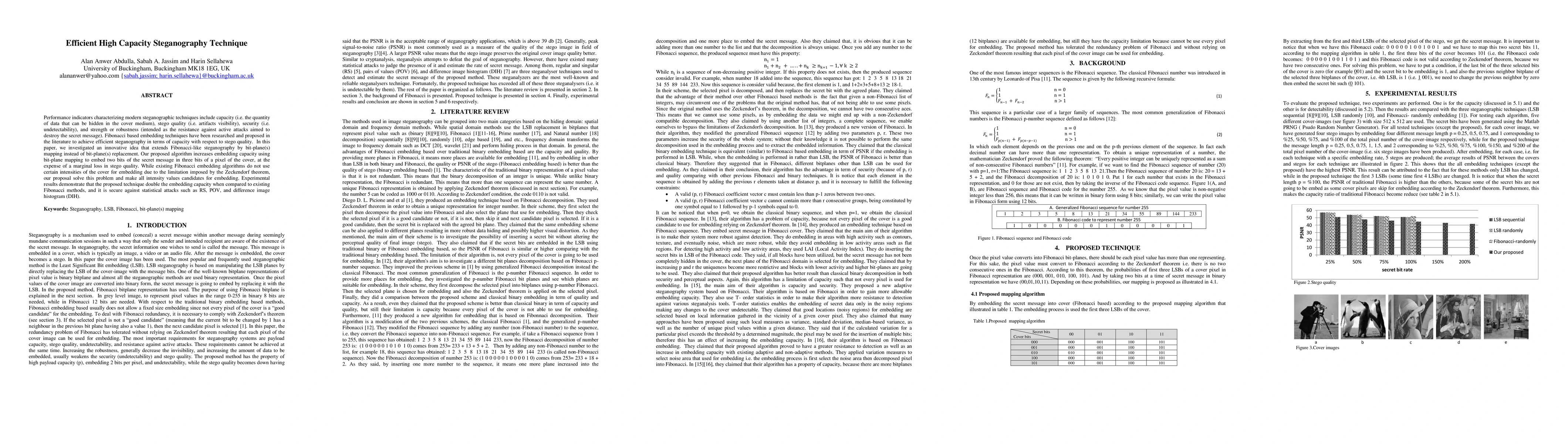 This paper proposes a novel Fibonacci-based steganography technique that enhances embedding capacity by mapping two secret bits into three cover pixel bits through bit-plane mapping, doubling capacity compared to existing methods while maintaining security against statistical attacks.