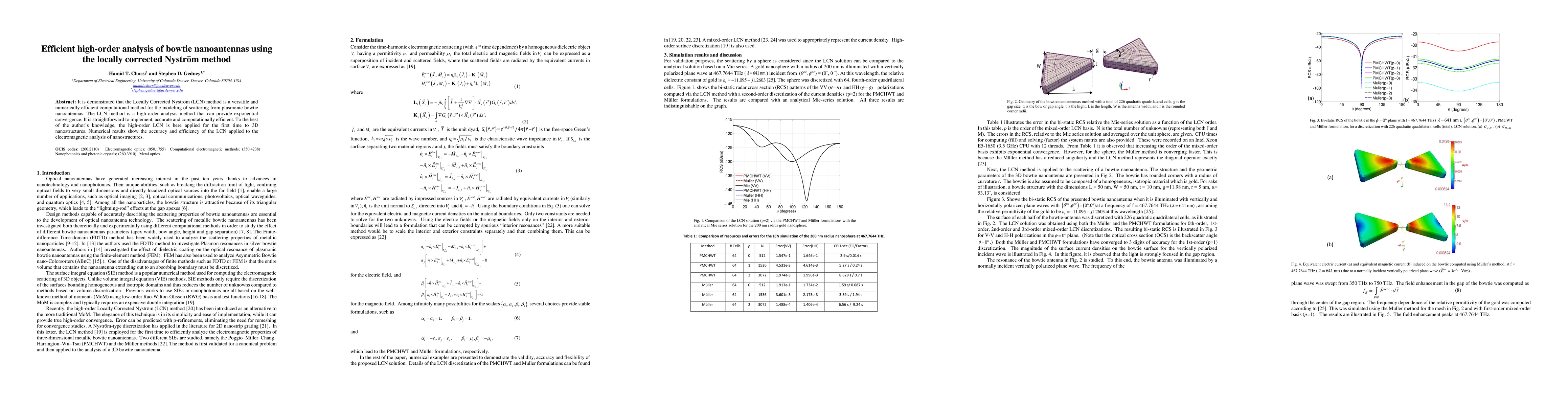 A new method called Locally Corrected Nystrom (LCN) is used to efficiently analyze bowtie nanoantennas, providing accurate and exponential convergence results.