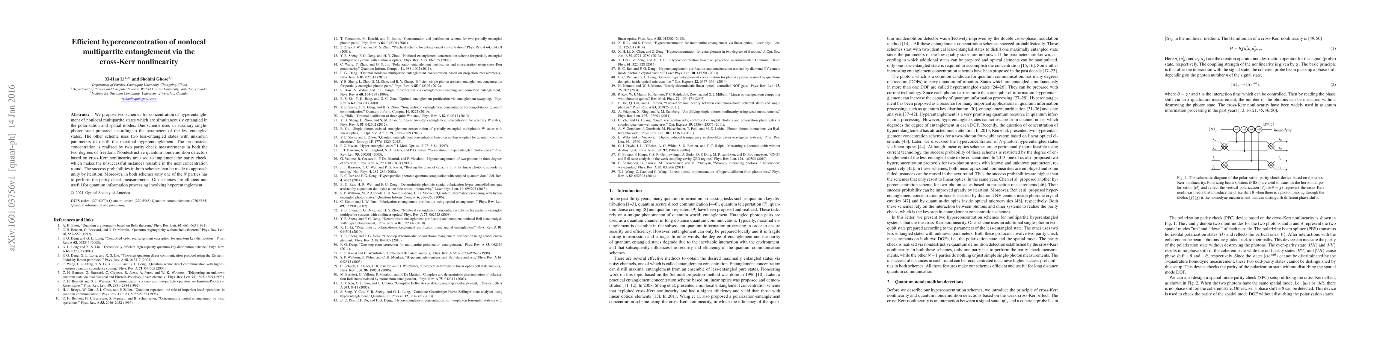 This paper proposes two efficient schemes for hyperconcentration of nonlocal multipartite entanglement using cross-Kerr nonlinearity. Both schemes utilize parity check measurements to distill maximal hyperentanglement, with nondestructive quantum detectors ensuring reusable unsuccessful instances. Success probabilities approach unity through iterative processes.
