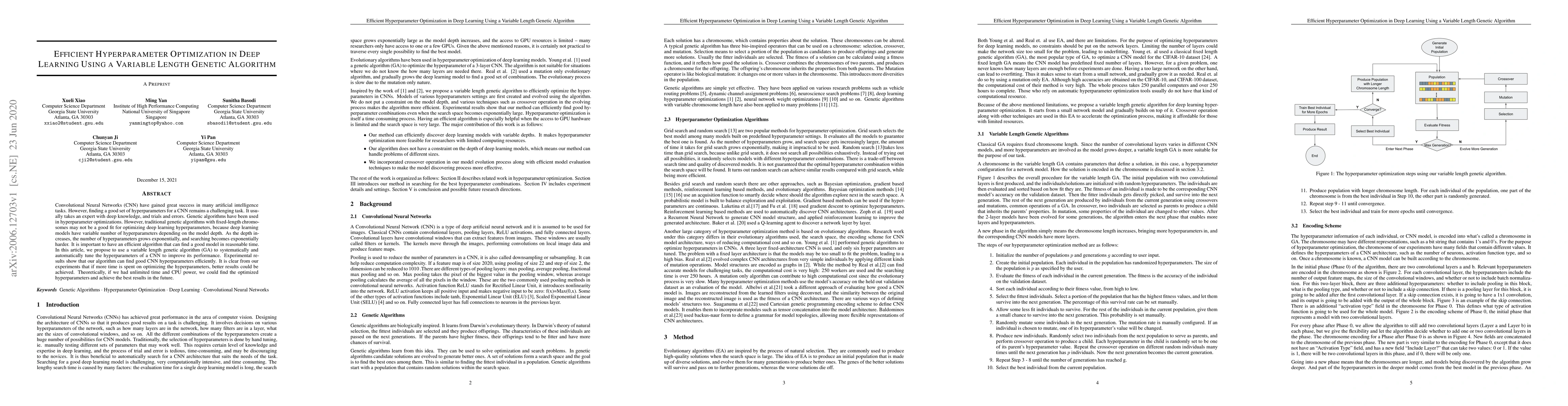 This research proposes a variable length genetic algorithm to optimize hyperparameters for Convolutional Neural Networks (CNNs), addressing the challenge of varying hyperparameter numbers due to model depth. The study demonstrates that the proposed method efficiently finds optimal hyperparameters, leading to improved CNN performance, and suggests that more optimization time correlates with better results.