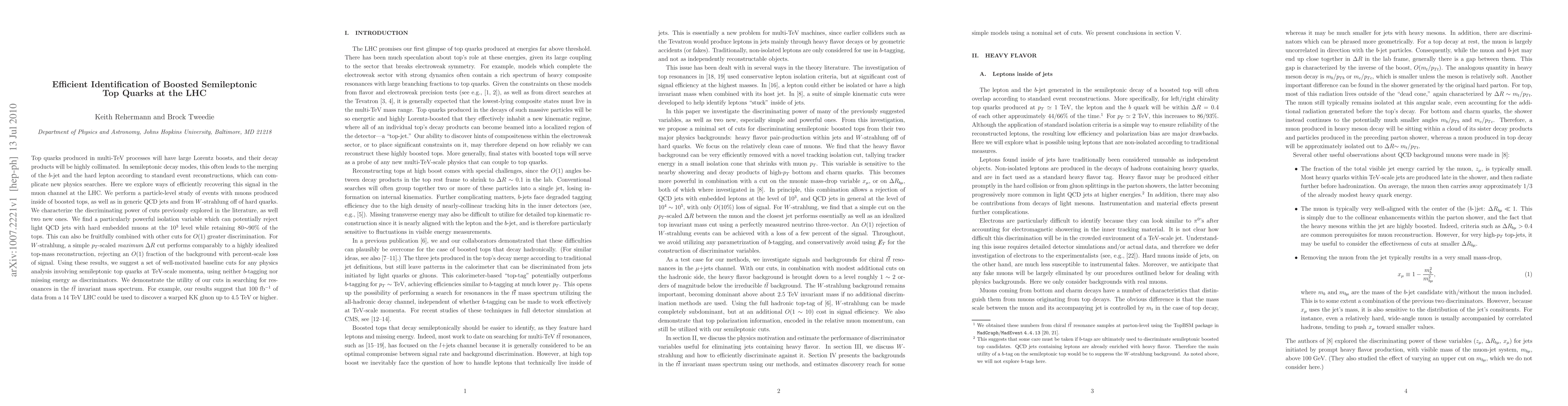 Top quarks produced in multi-TeV processes will have large Lorentz boosts, and their decay products will be highly collimated. In semileptonic decay modes, this often leads to the merging of the b-jet and the hard lepton according to standard event reconstructions, which can complicate new physics searches. Here we explore ways of efficiently recovering this signal in the muon channel at the LHC. We perform a particle-level study of events with muons produced inside of boosted tops, as well as in generic QCD jets and from W-strahlung off of hard quarks. We characterize the discriminating power of cuts previously explored in the literature, as well two new ones. We find a particularly powerful isolation variable which can potentially reject light QCD jets with hard embedded muons at the 10^3 level while retaining 80~90% of the tops. This can also be fruitfully combined with other cuts for O(1) greater discrimination. For W-strahlung, a simple pT-scaled maximum \Delta R cut performs comparably to a highly idealized top-mass reconstruction, rejecting an O(1) fraction of the background with percent-scale loss of signal. Using these results, we suggest a set of well-motivated baseline cuts for any physics analysis involving semileptonic top quarks at TeV-scale momenta, using neither b-tagging nor missing energy as discriminators. We demonstrate the utility of our cuts in searching for resonances in the top-antitop invariant mass spectrum. For example, our results suggest that 100 fb^{-1} of data from a 14 TeV LHC could be used to discover a warped KK gluon up to 4.5 TeV or higher.