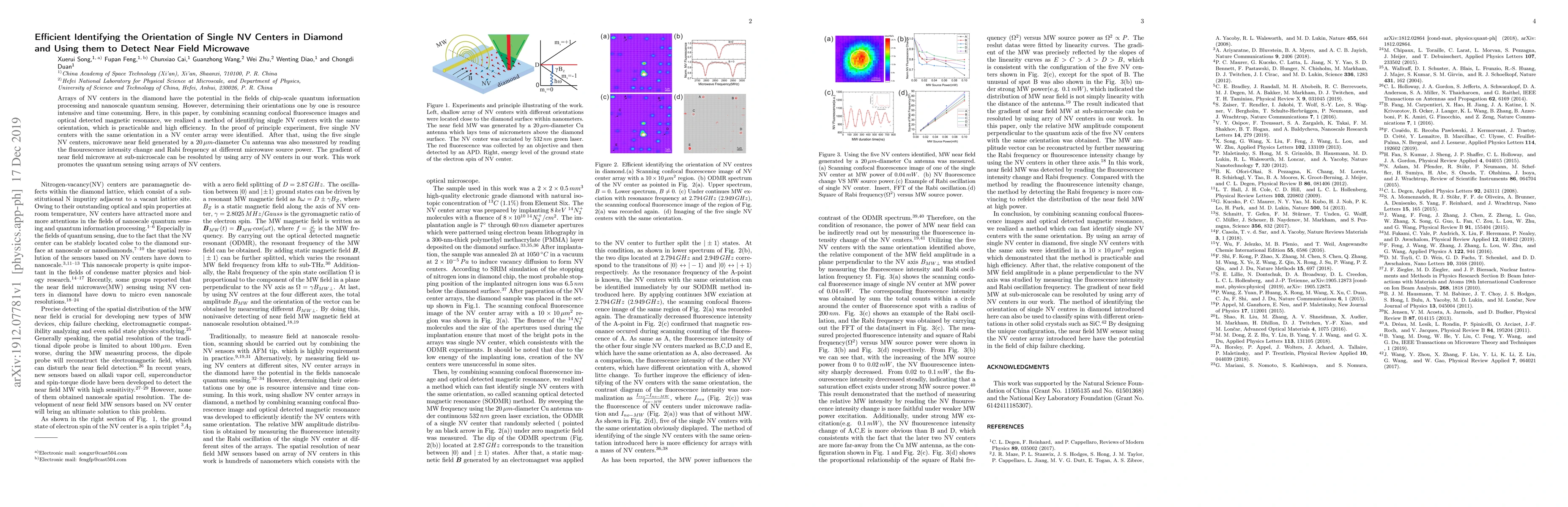 This paper presents an efficient method for identifying the orientation of single NV centers in diamond arrays using scanning confocal fluorescence and optical detected magnetic resonance, significantly improving the process's efficiency. The method was demonstrated to detect microwave near fields generated by a Cu antenna, showcasing the potential of NV center arrays in quantum sensing.