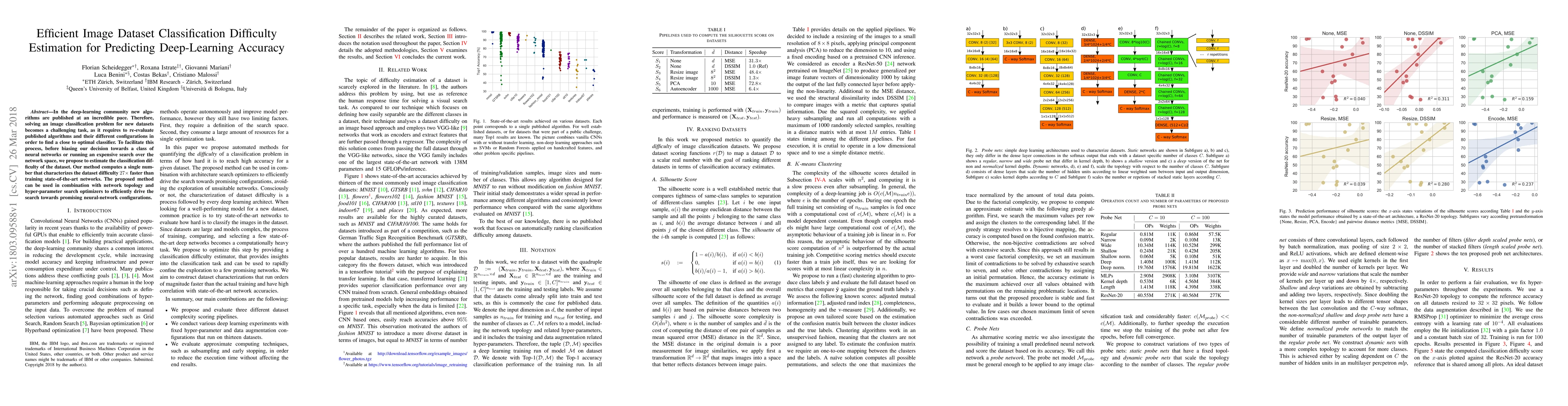 This research is significant as it provides efficient methods to estimate image dataset classification difficulty, which is crucial for selecting optimal deep-learning algorithms and configurations, thereby saving computational resources and time.
