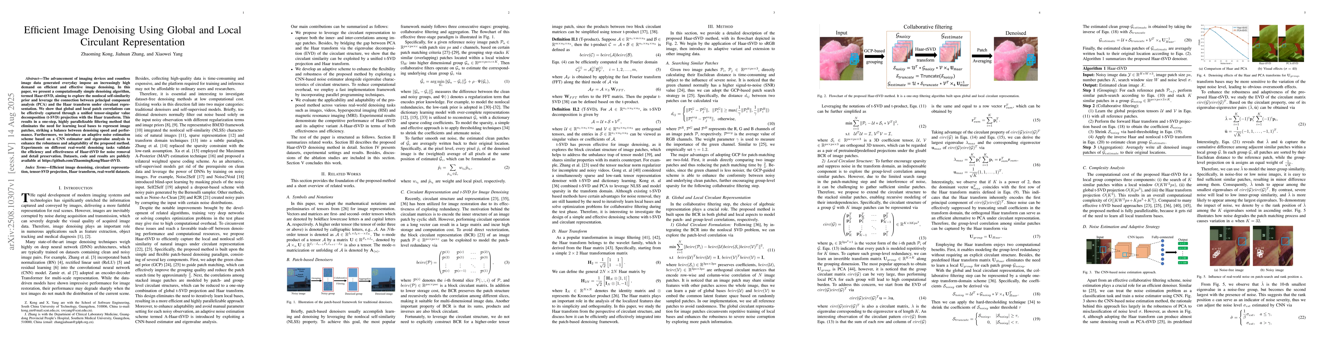 The advancement of imaging devices and countless image data generated everyday impose an increasingly high demand on efficient and effective image denoising. In this paper, we present a computationally simple denoising algorithm, termed Haar-tSVD, aiming to explore the nonlocal self-similarity prior and leverage the connection between principal component analysis (PCA) and the Haar transform under circulant representation. We show that global and local patch correlations can be effectively captured through a unified tensor-singular value decomposition (t-SVD) projection with the Haar transform. This results in a one-step, highly parallelizable filtering method that eliminates the need for learning local bases to represent image patches, striking a balance between denoising speed and performance. Furthermore, we introduce an adaptive noise estimation scheme based on a CNN estimator and eigenvalue analysis to enhance the robustness and adaptability of the proposed method. Experiments on different real-world denoising tasks validate the efficiency and effectiveness of Haar-tSVD for noise removal and detail preservation. Datasets, code and results are publicly available at https://github.com/ZhaomingKong/Haar-tSVD.