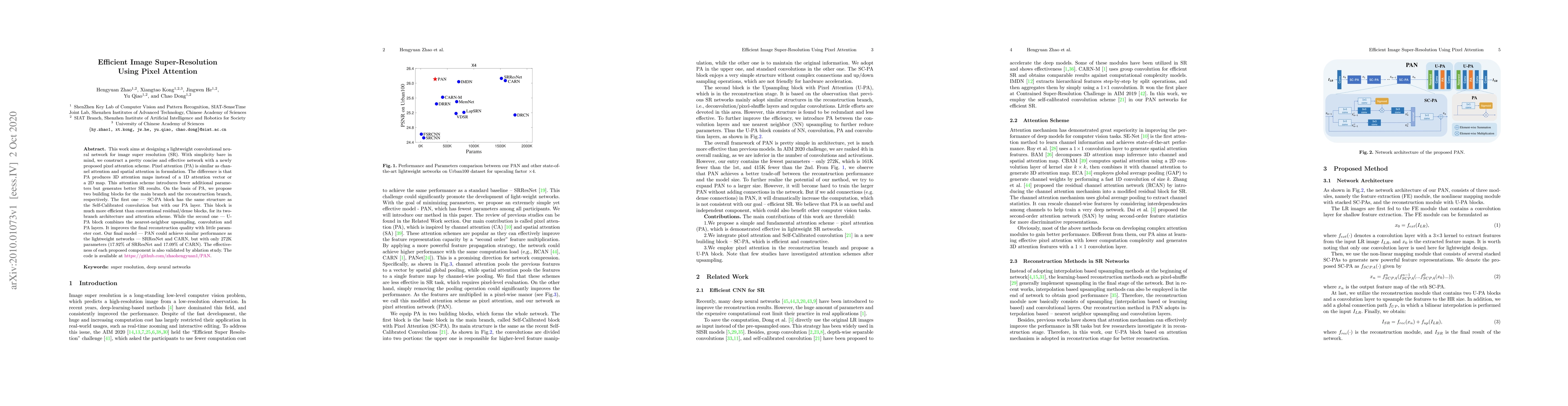 This paper proposes a lightweight convolutional neural network for image super-resolution using a novel pixel attention scheme that generates 3D attention maps, achieving better results with fewer parameters. The model, PAN, combines two efficient building blocks and achieves comparable performance to larger networks with significantly fewer parameters.