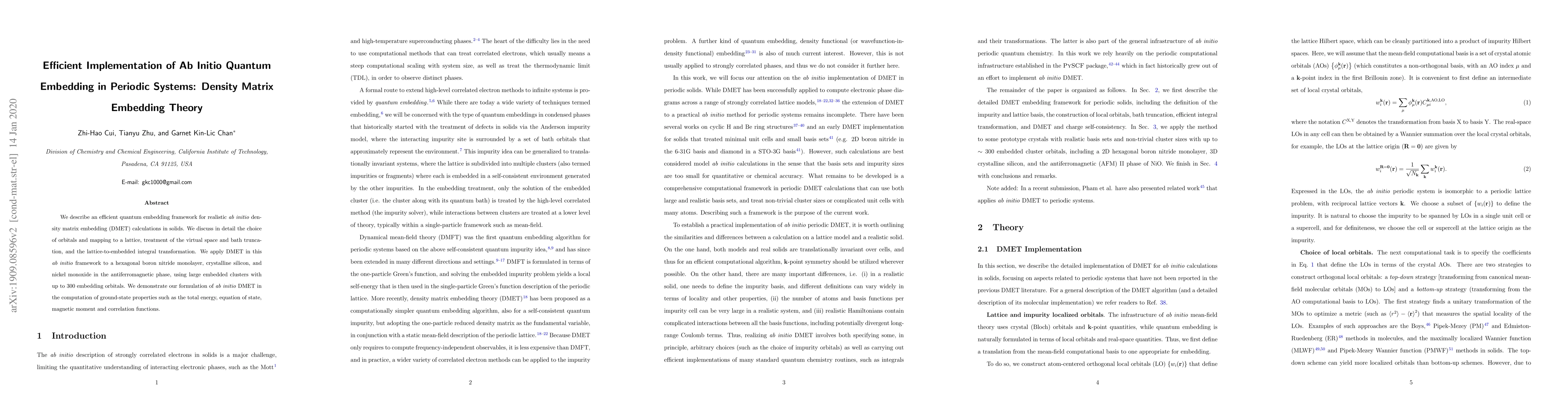 This paper presents an efficient quantum embedding framework for ab initio density matrix embedding theory (DMET) in periodic systems, detailing orbital choices and computational strategies. The method is applied to materials like hexagonal boron nitride, silicon, and nickel monoxide, demonstrating accurate ground-state properties computation.