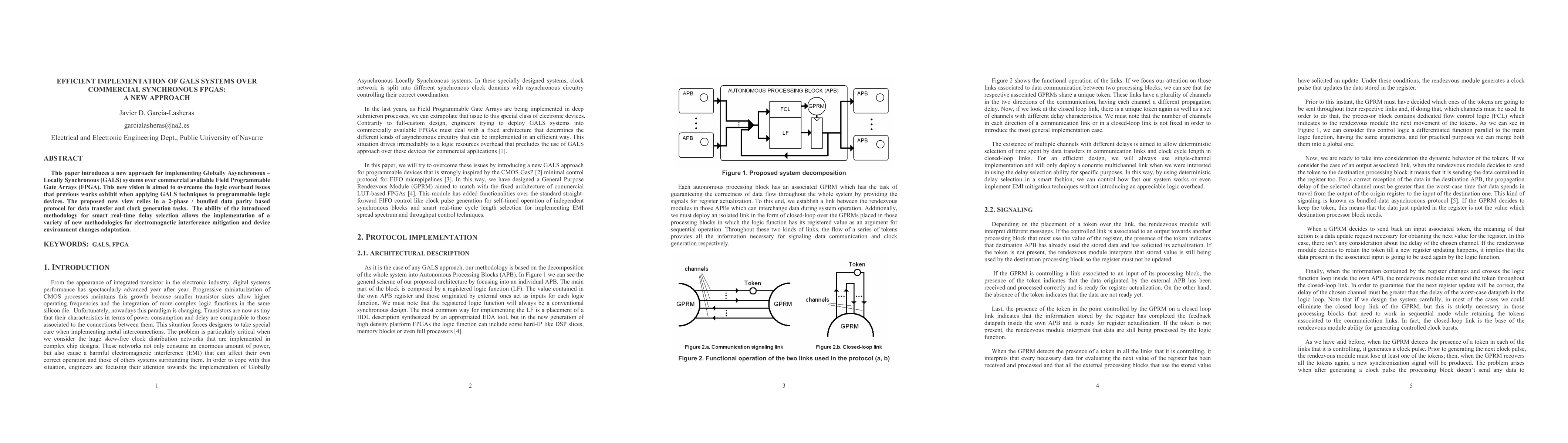 The new vision presented is aimed to overcome the logic overhead issues that previous works exhibit when applying GALS techniques to programmable logic devices. The proposed new view relies in a 2-phase, bundled data parity based protocol for data transfer and clock generation tasks. The ability of the introduced methodology for smart real-time delay selection allows the implementation of a variety of new methodologies for electromagnetic interference mitigation and device environment changes adaptation.