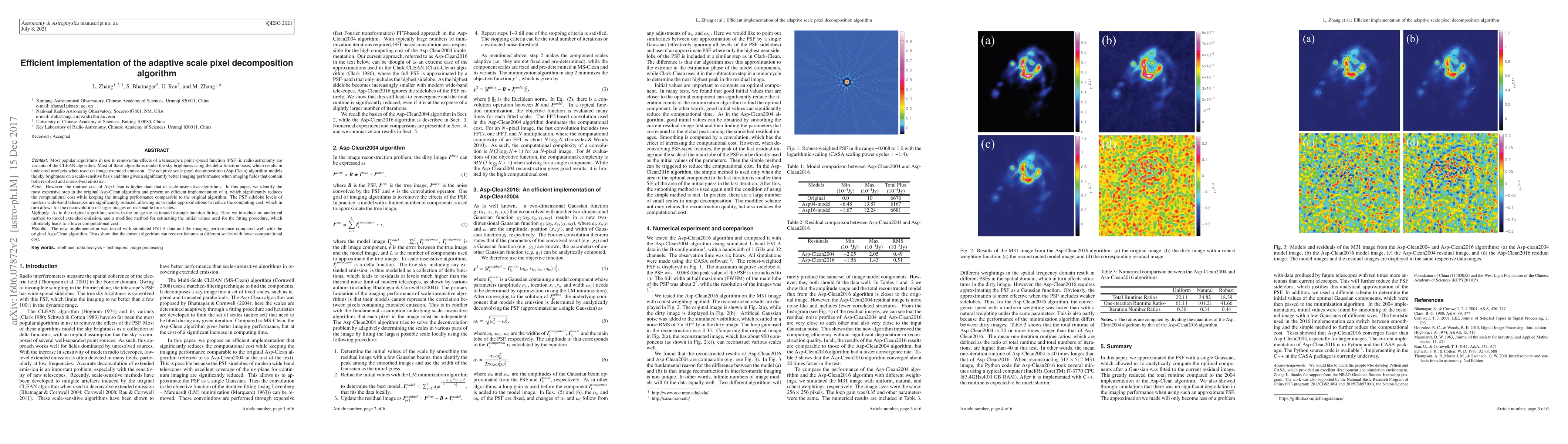 This paper presents an efficient implementation of the adaptive scale pixel decomposition (Asp-Clean) algorithm to reduce its computational cost while maintaining imaging performance. The new method introduces analytical modeling and modified initial value estimation, enabling faster processing of larger images with comparable results to the original algorithm.