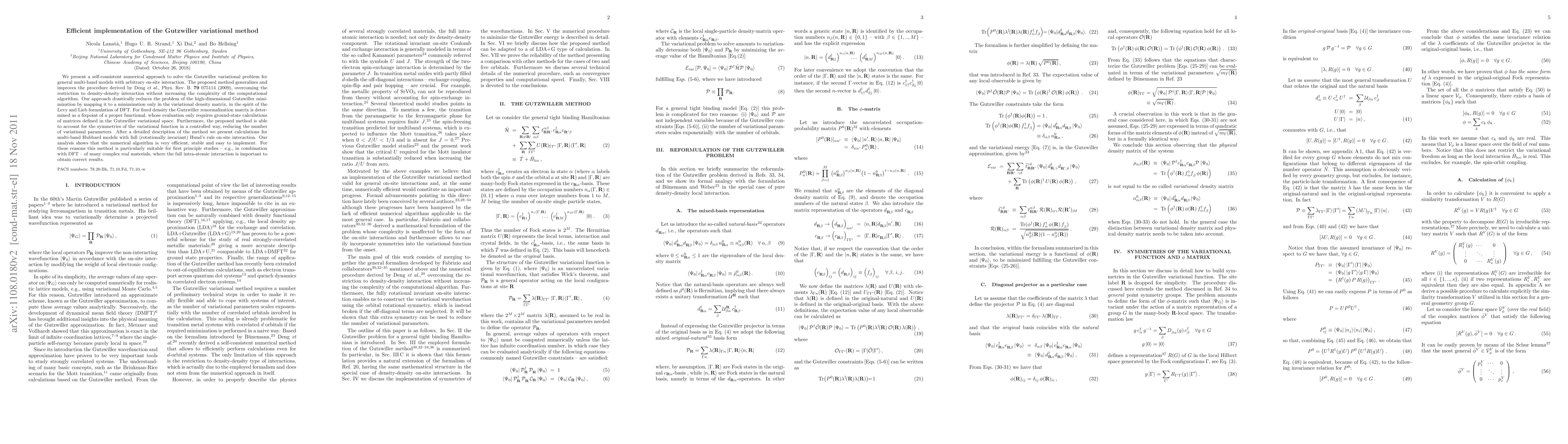 We present a self-consistent numerical approach to solve the Gutzwiller variational problem for general multi-band models with arbitrary on-site interaction. The proposed method generalizes and improves the procedure derived by Deng et al., Phys. Rev. B. 79 075114 (2009), overcoming the restriction to density-density interaction without increasing the complexity of the computational algorithm. Our approach drastically reduces the problem of the high-dimensional Gutzwiller minimization by mapping it to a minimization only in the variational density matrix, in the spirit of the Levy and Lieb formulation of DFT. For fixed density the Gutzwiller renormalization matrix is determined as a fixpoint of a proper functional, whose evaluation only requires ground-state calculations of matrices defined in the Gutzwiller variational space. Furthermore, the proposed method is able to account for the symmetries of the variational function in a controlled way, reducing the number of variational parameters. After a detailed description of the method we present calculations for multi-band Hubbard models with full (rotationally invariant) Hund's rule on-site interaction. Our analysis shows that the numerical algorithm is very efficient, stable and easy to implement. For these reasons this method is particularly suitable for first principle studies -- e.g., in combination with DFT -- of many complex real materials, where the full intra-atomic interaction is important to obtain correct results.