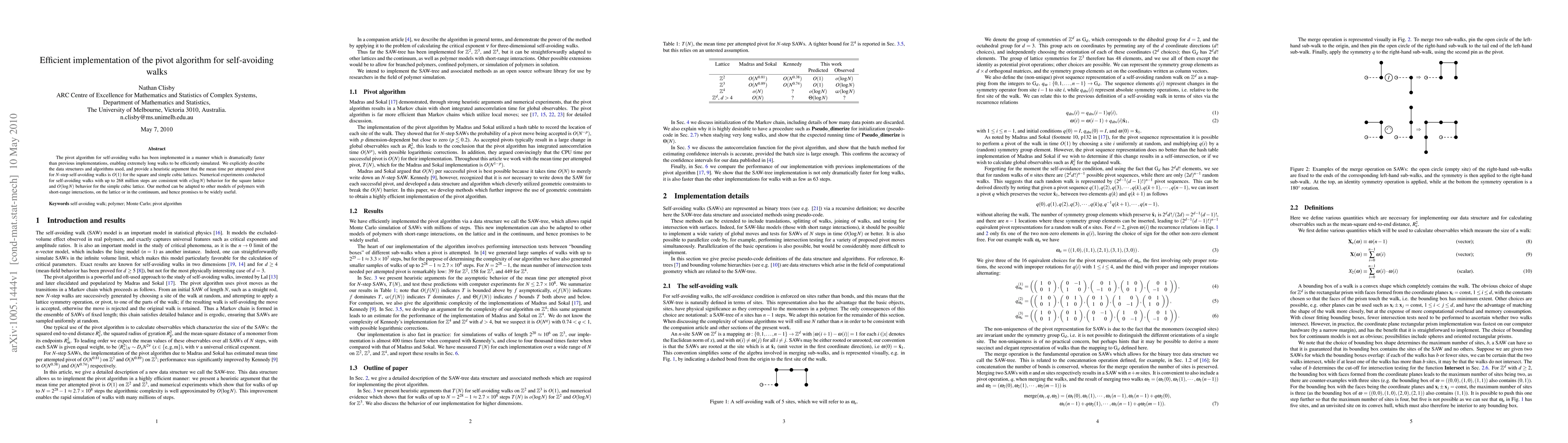 This paper presents a significantly faster implementation of the pivot algorithm for simulating self-avoiding walks, achieving efficient simulation of walks up to 268 million steps. The new method shows a mean time per pivot of $O(1)$ for square and simple cubic lattices, with numerical experiments supporting $o(\log N)$ and $O(\log N)$ behaviors respectively.