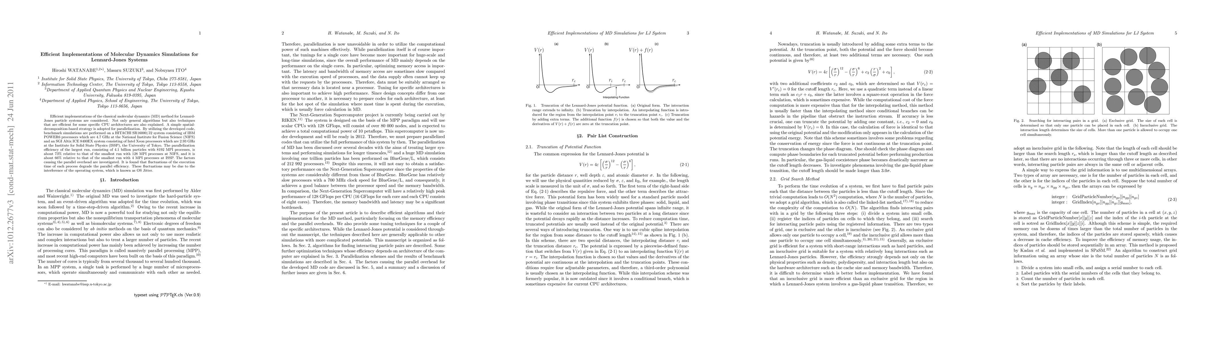 Researchers developed efficient implementations of molecular dynamics simulations for Lennard-Jones systems, achieving parallelization efficiencies of up to 73% on certain CPU architectures.