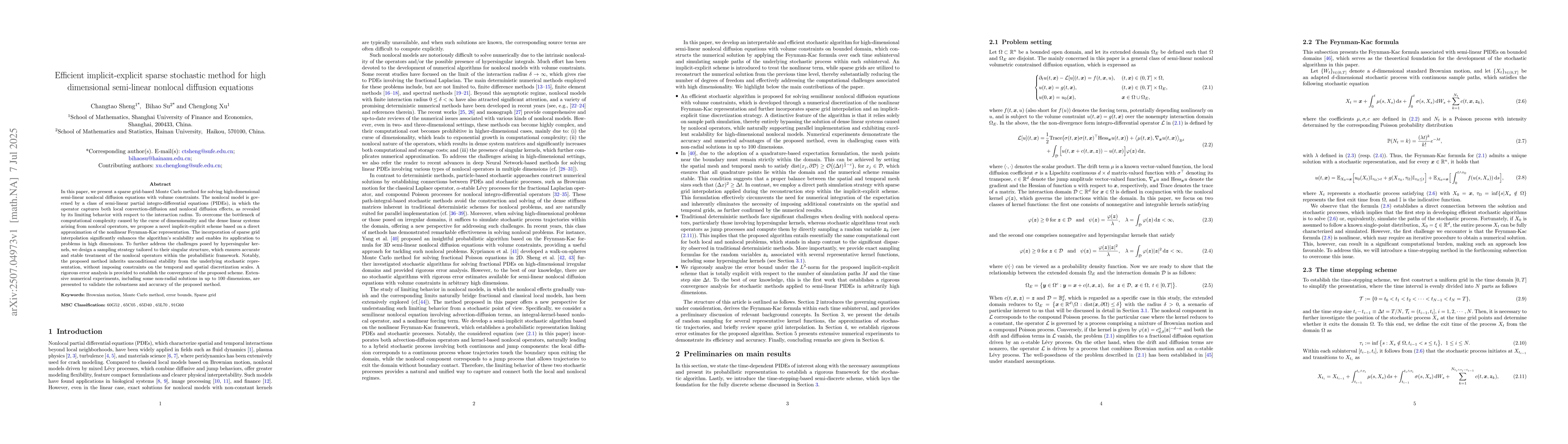 In this paper, we present a sparse grid-based Monte Carlo method for solving high-dimensional semi-linear nonlocal diffusion equations with volume constraints. The nonlocal model is governed by a class of semi-linear partial integro-differential equations (PIDEs), in which the operator captures both local convection-diffusion and nonlocal diffusion effects, as revealed by its limiting behavior with respect to the interaction radius. To overcome the bottleneck of computational complexity caused by the curse of dimensionality and the dense linear systems arising from nonlocal operators, we propose a novel implicit-explicit scheme based on a direct approximation of the nonlinear Feynman-Kac representation. The incorporation of sparse grid interpolation significantly enhances the algorithm's scalability and enables its application to problems in high dimensions. To further address the challenges posed by hypersingular kernels, we design a sampling strategy tailored to their singular structure, which ensures accurate and stable treatment of the nonlocal operators within the probabilistic framework. Notably, the proposed method inherits unconditional stability from the underlying stochastic representation, without imposing constraints on the temporal and spatial discretization scales. A rigorous error analysis is provided to establish the convergence of the proposed scheme. Extensive numerical experiments, including some non-radial solutions in up to 100 dimensions, are presented to validate the robustness and accuracy of the proposed method.