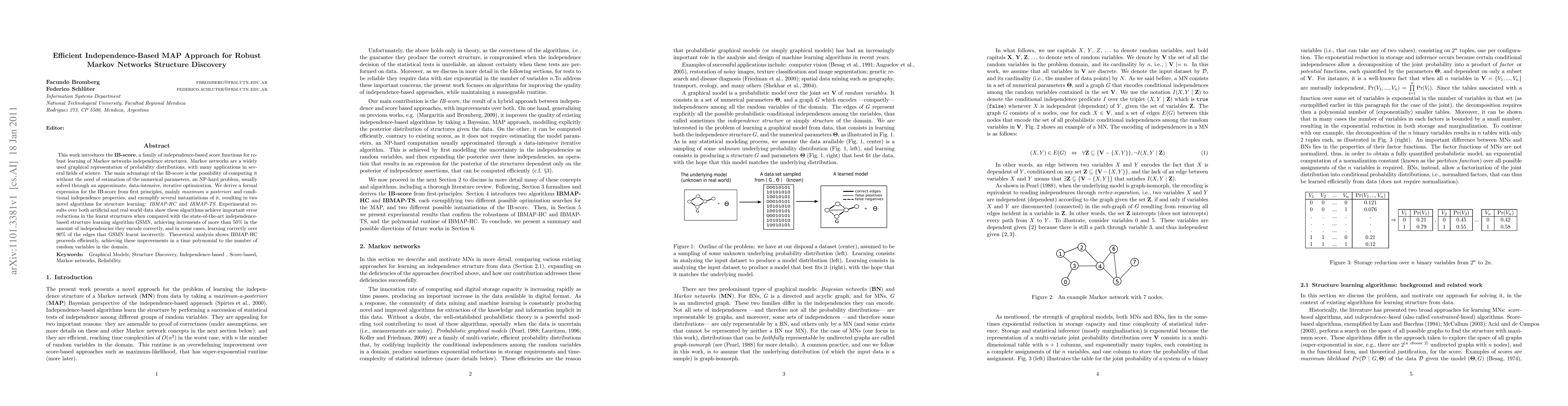 This paper proposes the IB-score, a novel independence-based score function for robust Markov network structure discovery, which avoids the computationally intensive parameter estimation. It introduces two algorithms, IBMAP-HC and IBMAP-TS, that significantly outperform the state-of-the-art GSMN algorithm, achieving over 50% improvement in correctly encoded independencies.