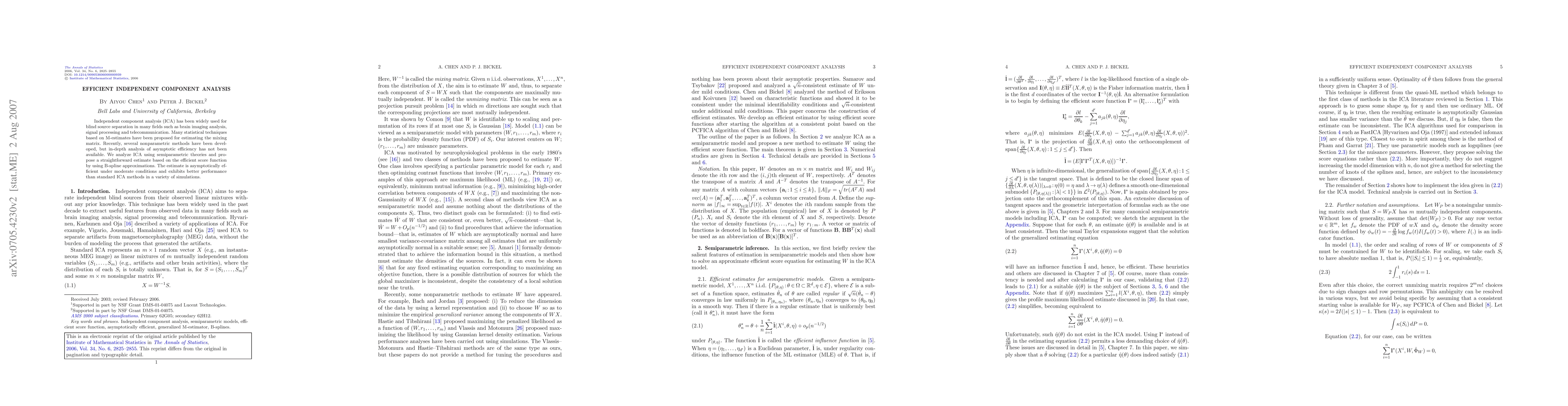 This paper proposes a new semiparametric method for efficient independent component analysis (ICA) using B-spline approximations. The method is shown to be asymptotically efficient and outperforms standard ICA techniques in various simulations.