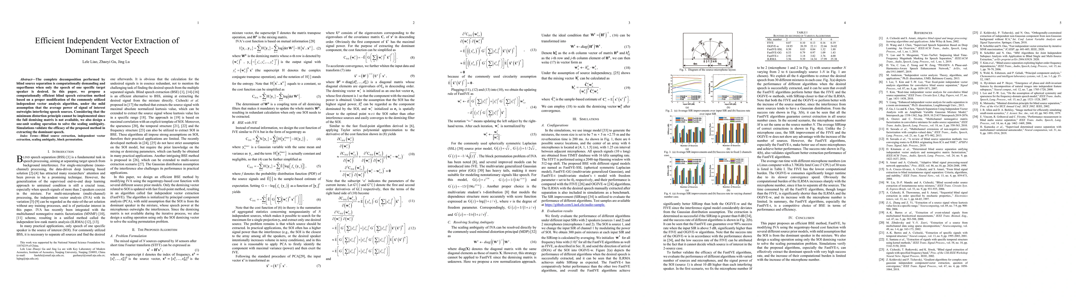 This paper proposes a computationally efficient method for extracting the dominant target speech using a modified independent vector analysis algorithm, assuming the target speech has higher average power than interfering sources. The method addresses scaling ambiguity through a one-unit scaling operation, validated by simulations to effectively isolate the target speech.