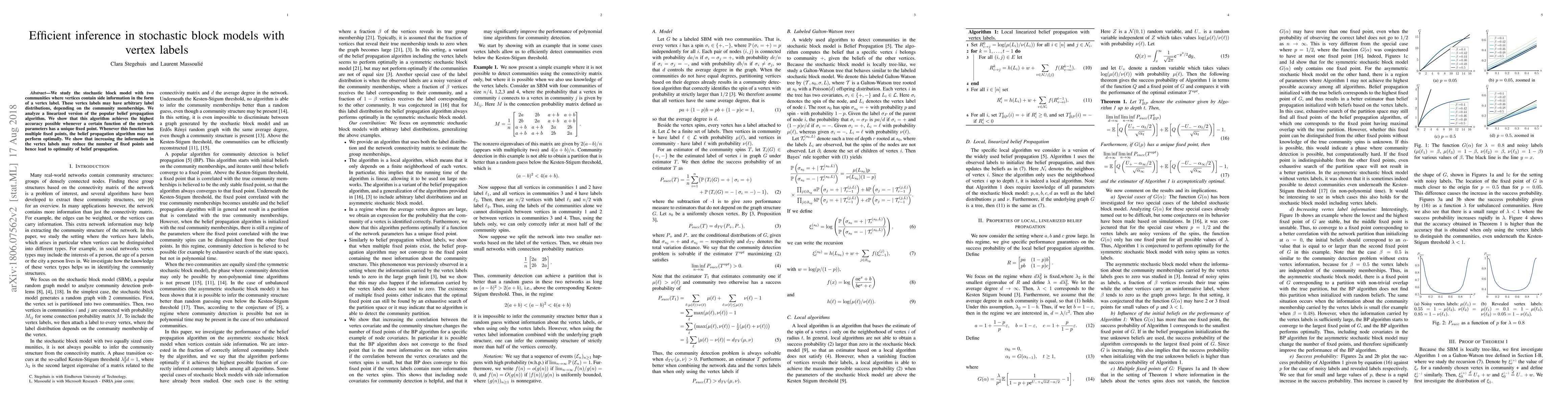Researchers analyze a belief propagation algorithm for stochastic block models with vertex labels to determine conditions under which it achieves optimal performance. They find that increasing label information can reduce the number of fixed points, leading to optimality in certain cases.