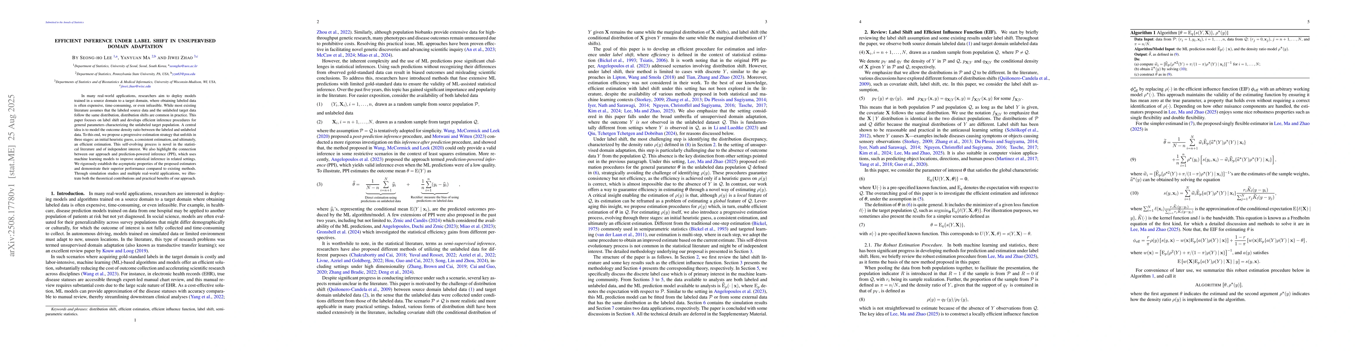 In many real-world applications, researchers aim to deploy models trained in a source domain to a target domain, where obtaining labeled data is often expensive, time-consuming, or even infeasible. While most existing literature assumes that the labeled source data and the unlabeled target data follow the same distribution, distribution shifts are common in practice. This paper focuses on label shift and develops efficient inference procedures for general parameters characterizing the unlabeled target population. A central idea is to model the outcome density ratio between the labeled and unlabeled data. To this end, we propose a progressive estimation strategy that unfolds in three stages: an initial heuristic guess, a consistent estimation, and ultimately, an efficient estimation. This self-evolving process is novel in the statistical literature and of independent interest. We also highlight the connection between our approach and prediction-powered inference (PPI), which uses machine learning models to improve statistical inference in related settings. We rigorously establish the asymptotic properties of the proposed estimators and demonstrate their superior performance compared to existing methods. Through simulation studies and multiple real-world applications, we illustrate both the theoretical contributions and practical benefits of our approach.