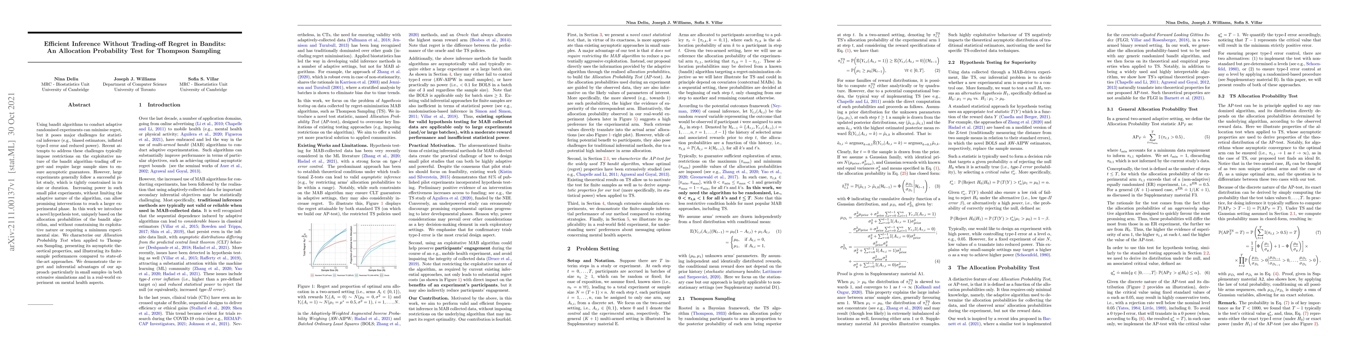 Researchers introduced an allocation probability test for Thompson Sampling to improve statistical inference in bandit algorithms without sacrificing adaptive nature or requiring large samples. The test offers regret and inferential advantages, particularly in small samples, as demonstrated through extensive simulations and a real-world experiment.