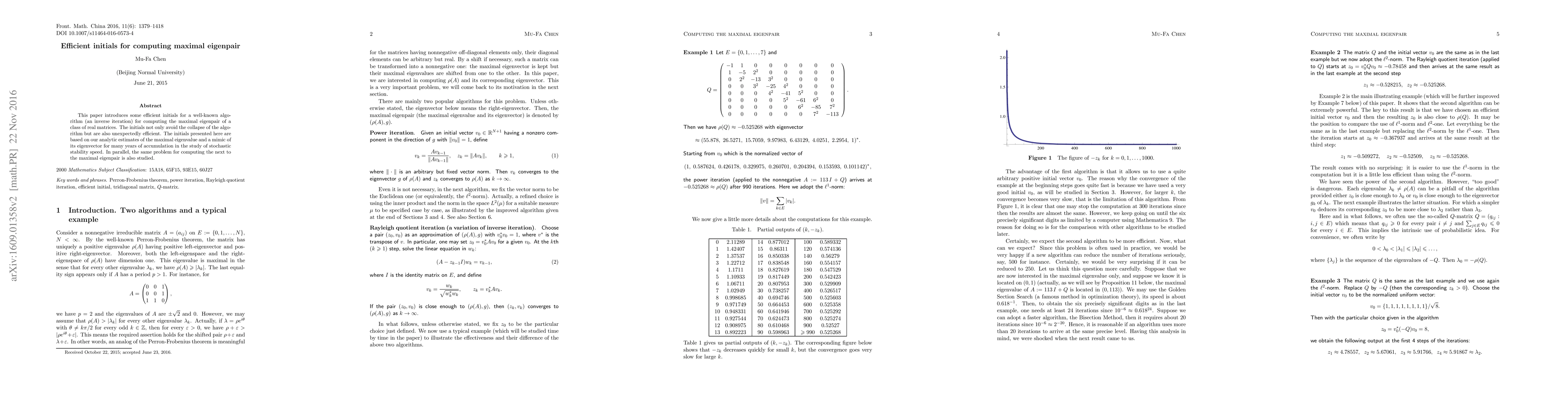 This paper introduces some efficient initials for a well-known algorithm (an inverse iteration) for computing the maximal eigenpair of a class of real matrices. The initials not only avoid the collapse of the algorithm but are also unexpectedly efficient. The initials presented here are based on our analytic estimates of the maximal eigenvalue and a mimic of its eigenvector for many years of accumulation in the study of stochastic stability speed. In parallel, the same problem for computing the next to the maximal eigenpair is also studied.