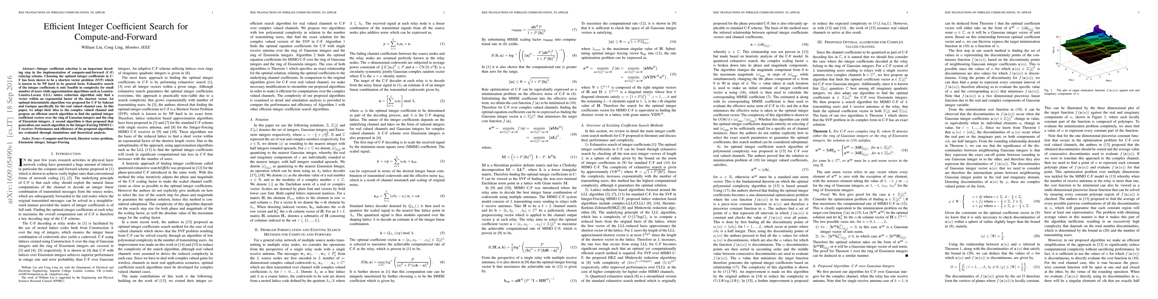 Integer coefficient selection is an important decoding step in the implementation of compute-and-forward (C-F) relaying scheme. Choosing the optimal integer coefficients in C-F has been shown to be a shortest vector problem (SVP) which is known to be NP hard in its general form. Exhaustive search of the integer coefficients is only feasible in complexity for small number of users while approximation algorithms such as Lenstra-Lenstra-Lovasz (LLL) lattice reduction algorithm only find a vector within an exponential factor of the shortest vector. An optimal deterministic algorithm was proposed for C-F by Sahraei and Gastpar specifically for the real valued channel case. In this paper, we adapt their idea to the complex valued channel and propose an efficient search algorithm to find the optimal integer coefficient vectors over the ring of Gaussian integers and the ring of Eisenstein integers. A second algorithm is then proposed that generalises our search algorithm to the Integer-Forcing MIMO C-F receiver. Performance and efficiency of the proposed algorithms are evaluated through simulations and theoretical analysis.