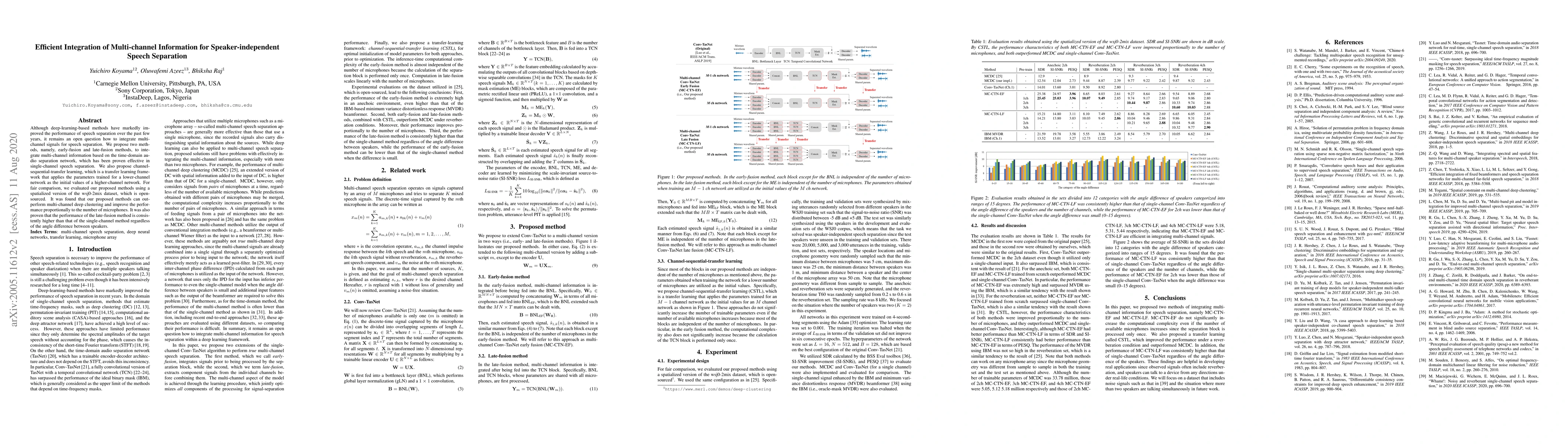 This paper proposes two methods for integrating multi-channel information in speaker-independent speech separation: early-fusion and late-fusion techniques. The study also introduces channel-sequential-transfer learning to enhance network performance across different channel counts. Results show superior performance compared to existing methods, with late-fusion consistently outperforming single-channel separation.