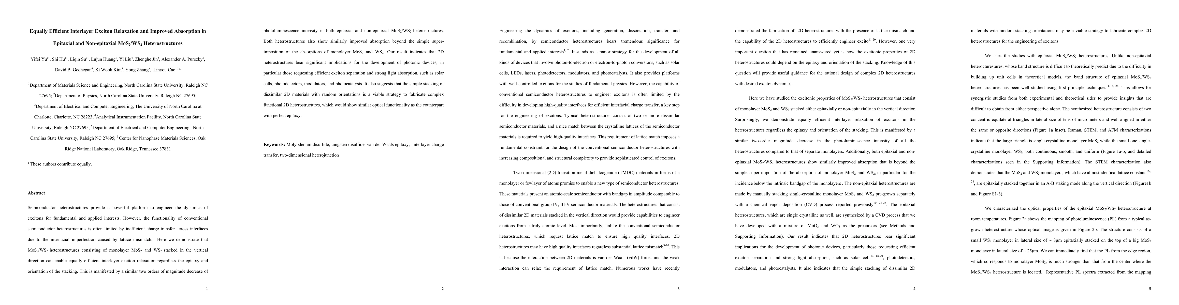 This paper investigates excitonic properties in MoS2/WS2 heterostructures, revealing efficient interlayer relaxation and transition in both epitaxial and non-epitaxial configurations, with significant implications for photovoltaic and optoelectronic applications. The study highlights the potential of 2D heterostructures for exciton engineering at the atomic level.