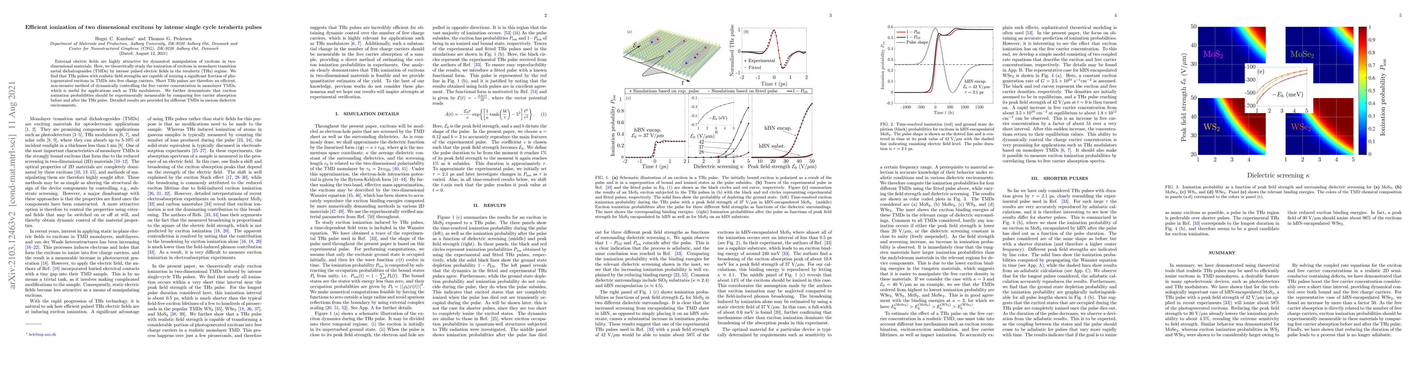 This paper theoretically explores the ionization of excitons in monolayer transition metal dichalcogenides (TMDs) using intense terahertz pulses, finding that such pulses can efficiently ionize a significant portion of photogenerated excitons into free charge carriers. This method offers a non-invasive way to control free carrier concentration, with potential applications in THz modulators.