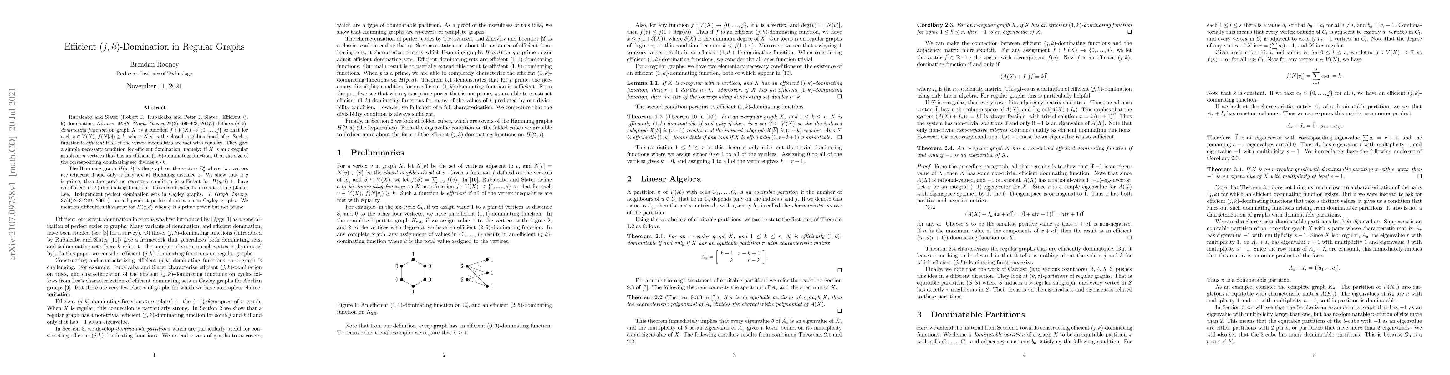 Rubalcaba and Slater (Robert R. Rubalcaba and Peter J. Slater. Efficient (j,k)-domination. Discuss. Math. Graph Theory, 27(3):409-423, 2007.) define a $(j,k)$-dominating function on graph $X$ as a function $f:V(X)\rightarrow \{0,\ldots,j\}$ so that for each $v\in V(X)$, $f(N[v])\geq k$, where $N[v]$ is the closed neighbourhood of $v$. Such a function is efficient if all of the vertex inequalities are met with equality. They give a simple necessary condition for efficient domination, namely: if $X$ is an $r$-regular graph on $n$ vertices that has an efficient $(1,k)$-dominating function, then the size of the corresponding dominating set divides $n\cdot k$. The Hamming graph $H(q,d)$ is the graph on the vectors $\mathbb{Z}_q^d$ where two vectors are adjacent if and only if they are at Hamming distance $1$. We show that if $q$ is prime, then the previous necessary condition is sufficient for $H(q,d)$ to have an efficient $(1,k)$-dominating function. This result extends a result of Lee (Jaeun Lee. Independent perfect domination sets in Cayley graphs. J. Graph Theory, 37(4):213-219, 2001.) on independent perfect domination in Cayley graphs. We mention difficulties that arise for $H(q,d)$ when $q$ is a prime power but not prime.