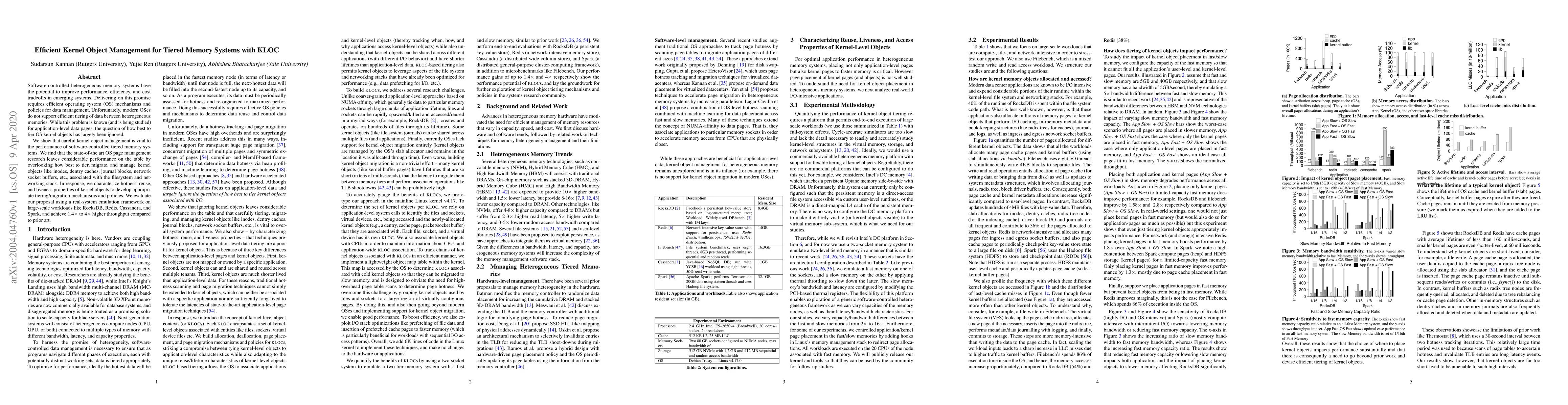 This paper proposes efficient kernel object management strategies for tiered memory systems using KLOC, demonstrating significant performance improvements by optimizing the tiering of kernel objects like inodes and network buffers. The study shows that traditional OS page management techniques fail to adequately address kernel object management, leading to substantial performance gains when implemented.
