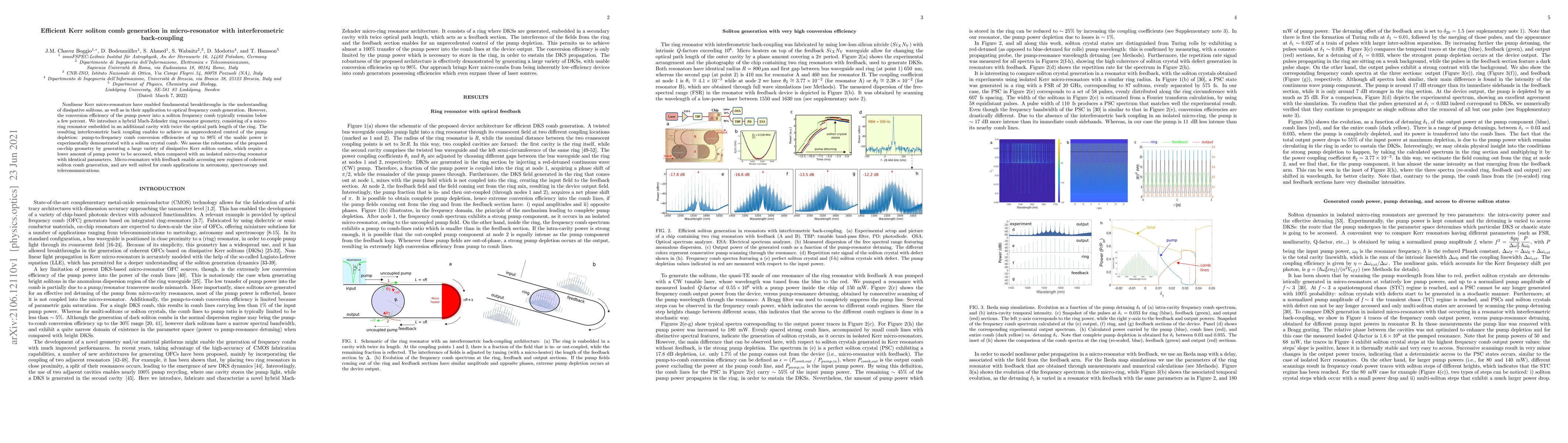 This paper introduces a novel hybrid Mach-Zehnder ring resonator geometry that significantly enhances the efficiency of Kerr soliton comb generation in micro-resonators through interferometric back-coupling, achieving up to 98% conversion efficiency. This design also allows for lower pump power requirements and generates a variety of dissipative Kerr soliton combs suitable for applications in astronomy, spectroscopy, and telecommunications.