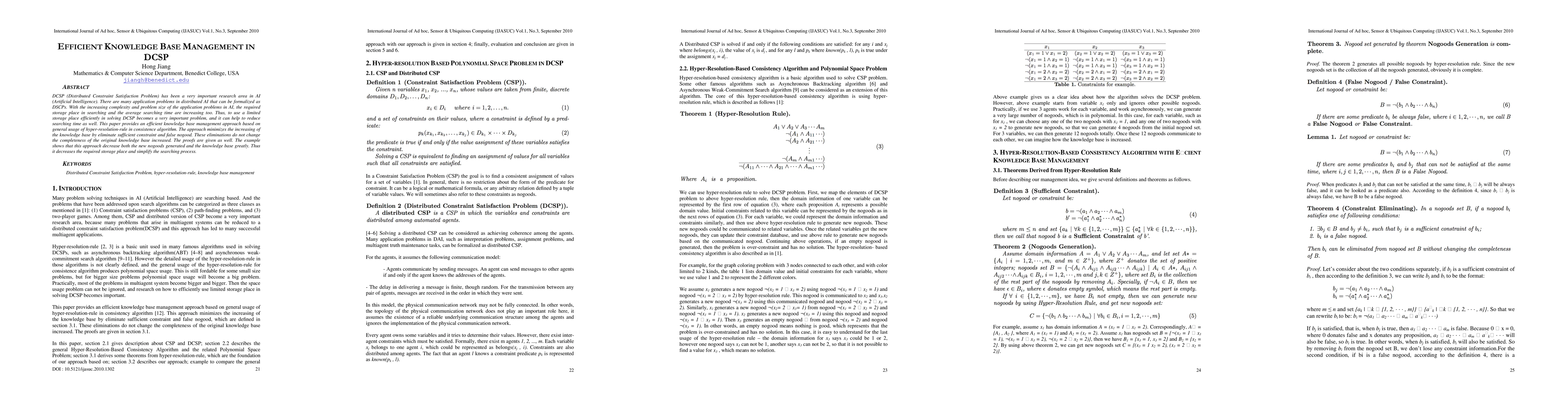This paper presents an efficient approach to managing knowledge bases in Distributed Constraint Satisfaction Problems (DCSP), reducing storage space and search time.