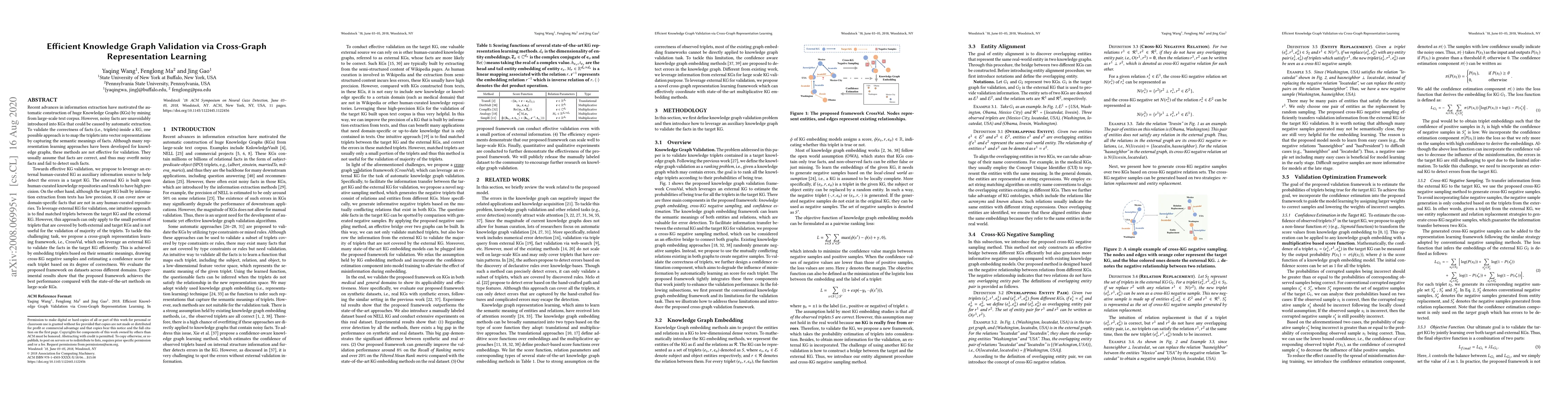 The paper proposes CrossVal, a cross-graph representation learning framework for validating Knowledge Graphs (KGs) by leveraging an external human-curated KG as an auxiliary source. It achieves efficient validation by embedding triplets based on their semantic meanings and estimating confidence scores for each triplet, outperforming state-of-the-art methods in large-scale KG validation.