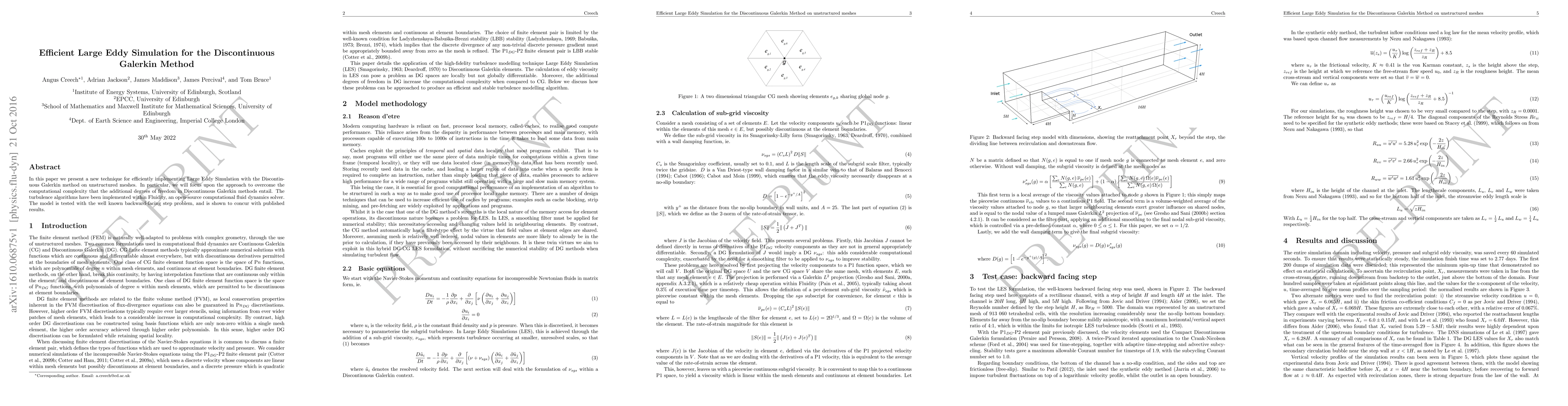 This paper introduces a new technique for efficiently implementing Large Eddy Simulation using the Discontinuous Galerkin method on unstructured meshes, addressing computational complexity issues. The proposed approach is tested in Fluidity, demonstrating accurate results for the backward-facing step problem.