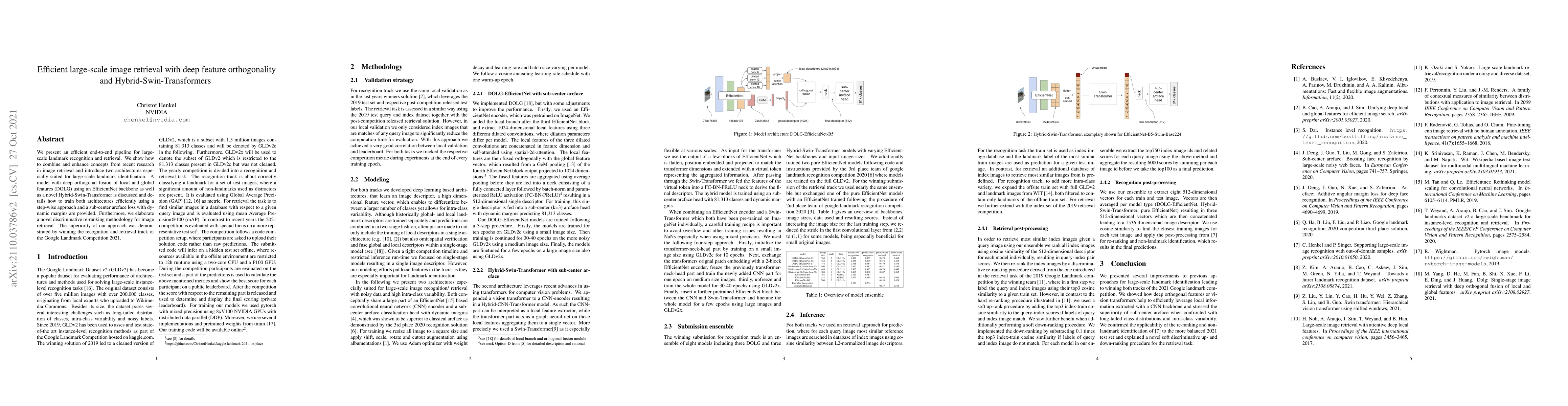 This paper proposes an efficient end-to-end system for large-scale landmark recognition and retrieval, utilizing deep feature orthogonality and a Hybrid-Swin-Transformer architecture. The authors demonstrate superior performance through winning the Google Landmark Competition 2021.