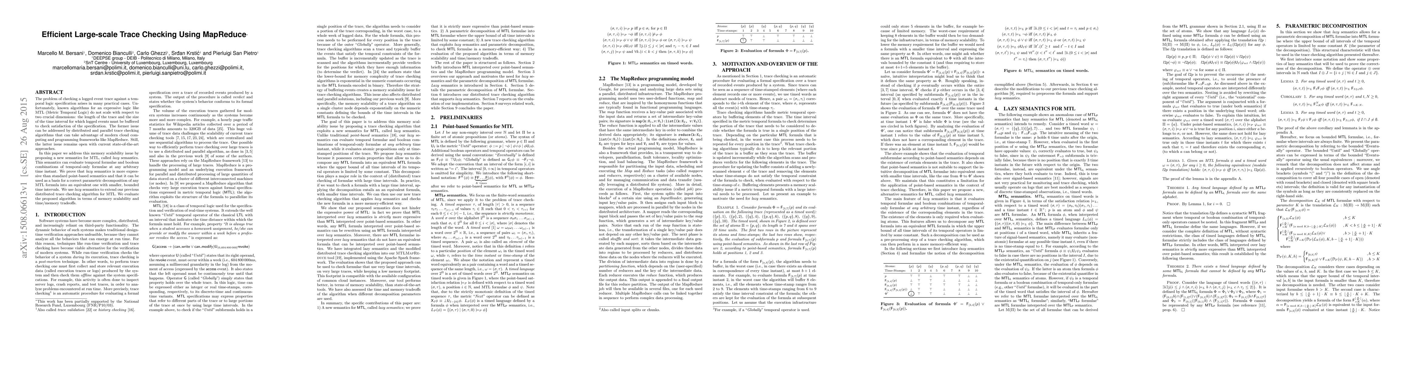 This paper proposes a new lazy semantics for Metric Temporal Logic (MTL) to address memory scalability in large-scale trace checking. It introduces a distributed algorithm leveraging MapReduce to decompose MTL formulas into smaller, bounded time intervals, significantly improving time/memory tradeoffs.