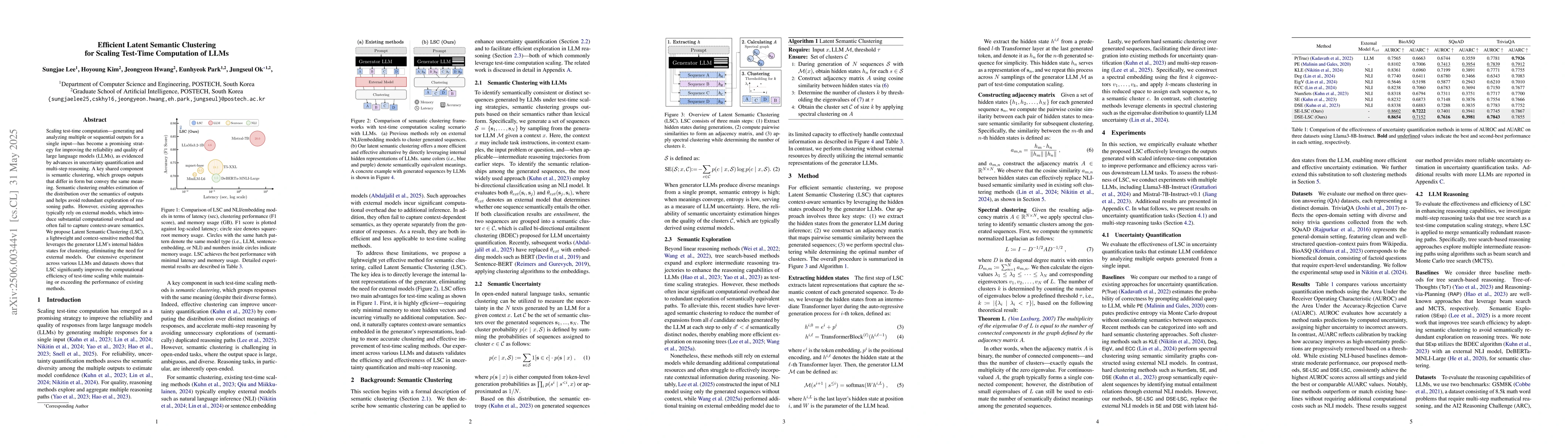 This paper introduces Latent Semantic Clustering (LSC), a lightweight method that improves test-time scaling of large language models by leveraging the internal hidden states of the model, reducing computational overhead and maintaining performance.