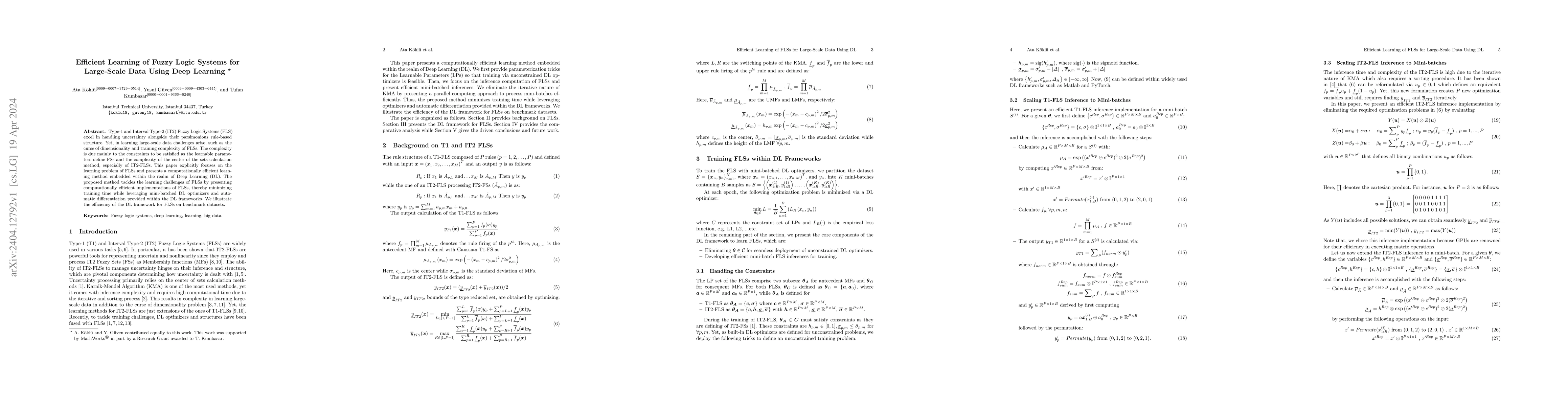 This paper introduces a deep learning-based approach to efficiently learn Type-1 and Interval Type-2 Fuzzy Logic Systems for large-scale data, addressing the curse of dimensionality and training complexity by utilizing DL optimizers and automatic differentiation to minimize training time. The effectiveness of the proposed method is demonstrated through benchmark datasets.