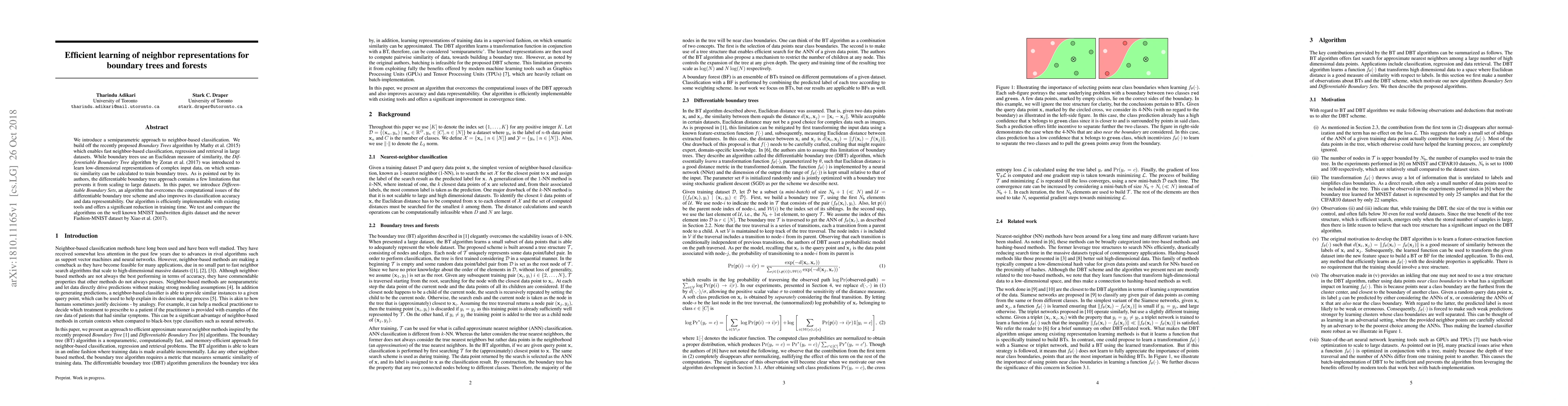 This paper proposes Differentiable Boundary Sets, an improved algorithm for neighbor-based classification that overcomes the scalability and accuracy limitations of the previous Differentiable Boundary Tree method. It significantly reduces training time and is efficiently implementable, demonstrated through testing on MNIST and Fashion-MNIST datasets.