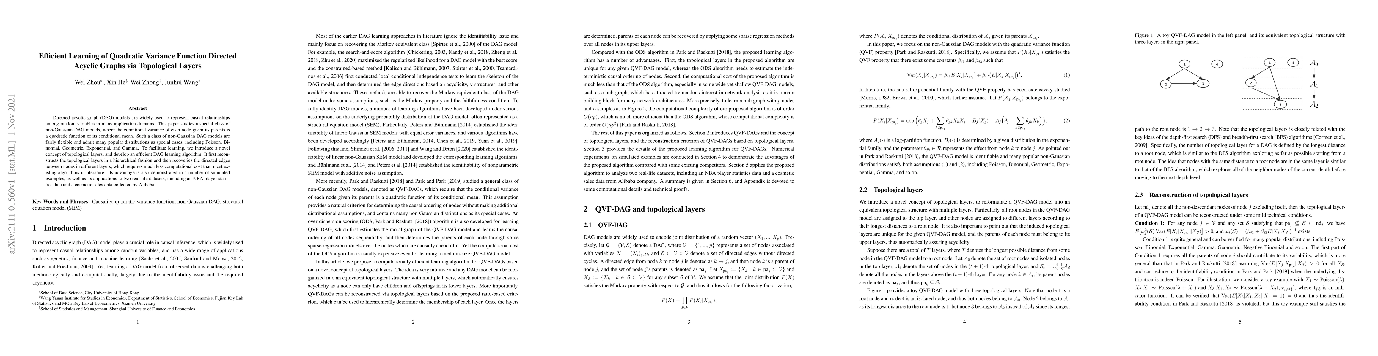 This paper proposes a novel method for learning quadratic variance function directed acyclic graphs (DAGs) using topological layers, which reconstructs the graph in a hierarchical manner to reduce computational cost. The method is shown to be efficient and effective through simulations and real-world applications, including NBA player statistics and Alibaba cosmetic sales data.