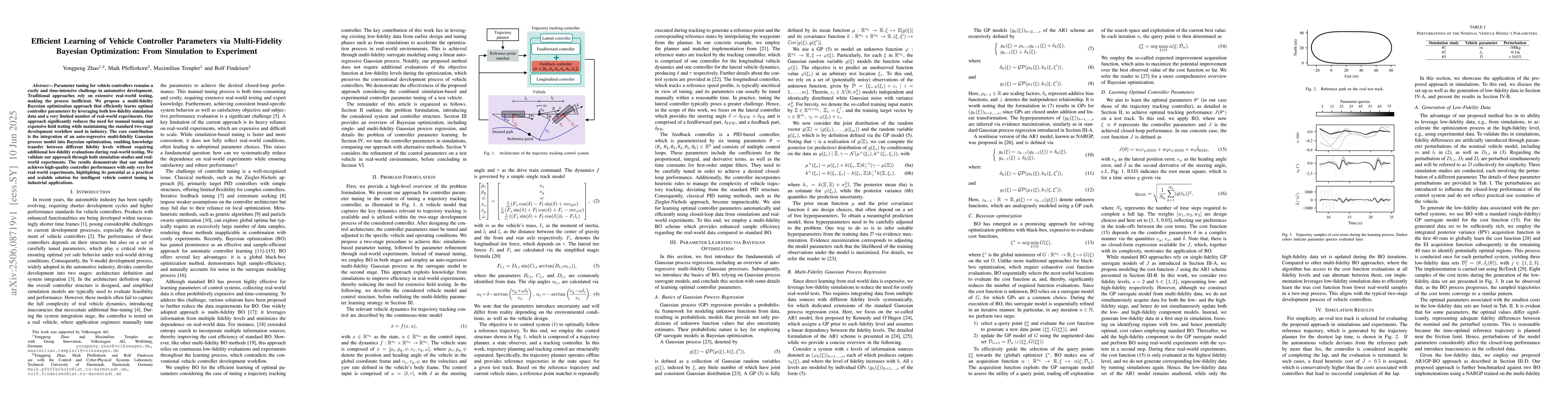 Researchers developed a method to efficiently tune vehicle controller parameters using low-fidelity simulation data and limited real-world experiments, reducing the need for costly field testing.