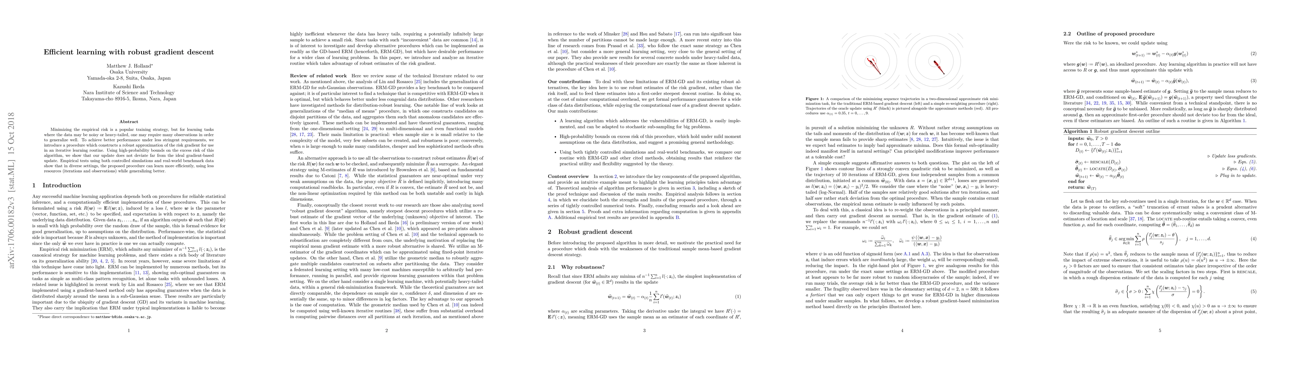 Minimizing the empirical risk is a popular training strategy, but for learning tasks where the data may be noisy or heavy-tailed, one may require many observations in order to generalize well. To achieve better performance under less stringent requirements, we introduce a procedure which constructs a robust approximation of the risk gradient for use in an iterative learning routine. Using high-probability bounds on the excess risk of this algorithm, we show that our update does not deviate far from the ideal gradient-based update. Empirical tests using both controlled simulations and real-world benchmark data show that in diverse settings, the proposed procedure can learn more efficiently, using less resources (iterations and observations) while generalizing better.