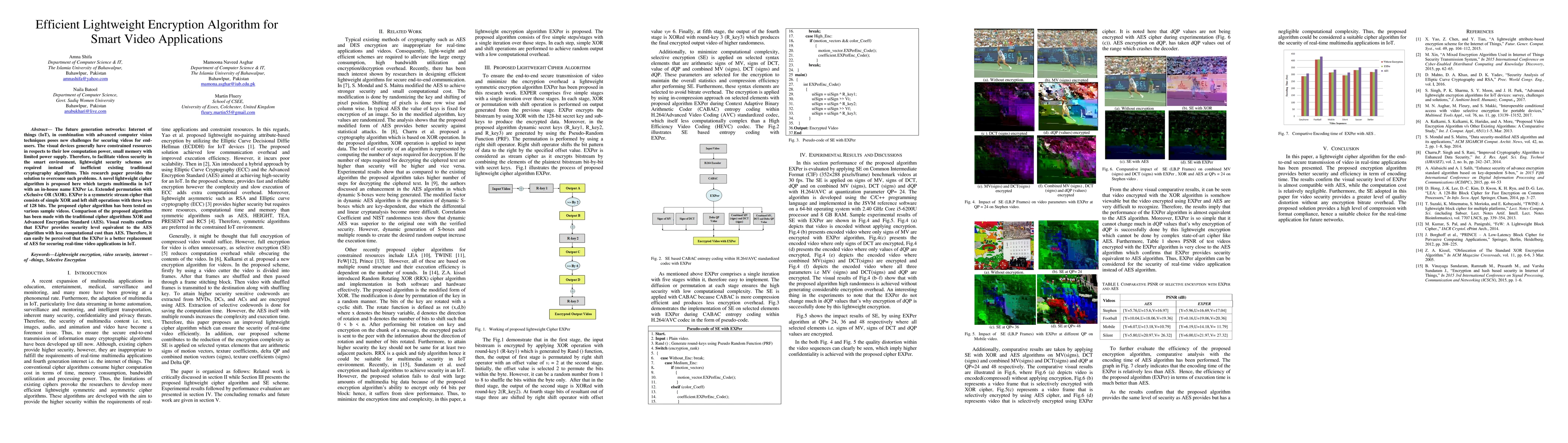 This paper proposes a novel lightweight encryption algorithm named EXPer for securing videos in IoT environments, where devices have limited resources. The EXPer algorithm, a symmetric stream cipher using simple XOR and left shift operations, offers equivalent security to AES but with lower computational cost, making it more suitable for resource-constrained smart video applications.
