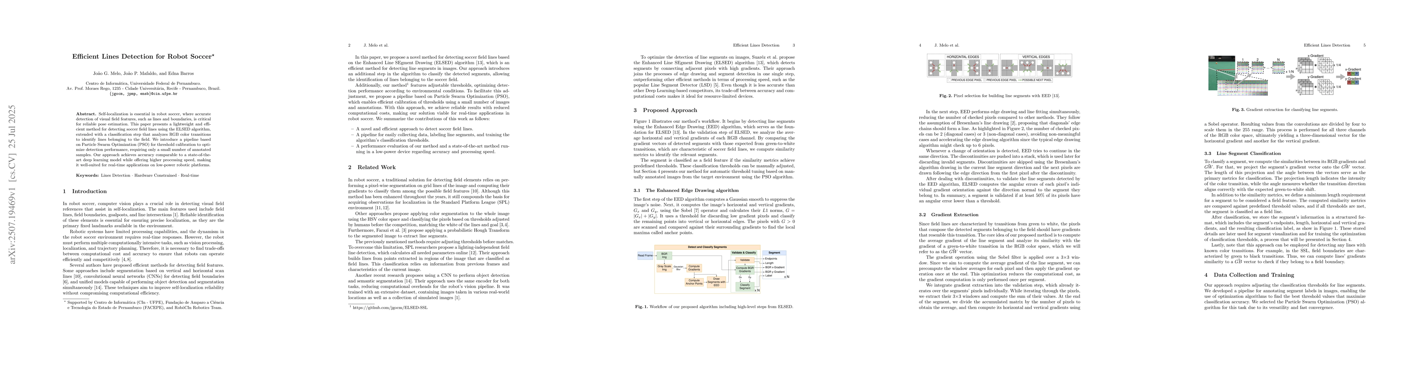Self-localization is essential in robot soccer, where accurate detection of visual field features, such as lines and boundaries, is critical for reliable pose estimation. This paper presents a lightweight and efficient method for detecting soccer field lines using the ELSED algorithm, extended with a classification step that analyzes RGB color transitions to identify lines belonging to the field. We introduce a pipeline based on Particle Swarm Optimization (PSO) for threshold calibration to optimize detection performance, requiring only a small number of annotated samples. Our approach achieves accuracy comparable to a state-of-the-art deep learning model while offering higher processing speed, making it well-suited for real-time applications on low-power robotic platforms.