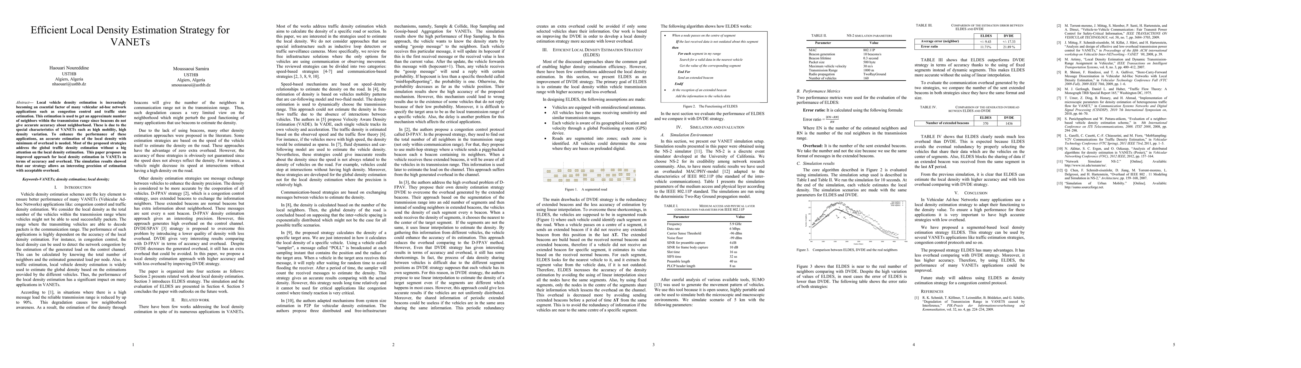 Local vehicle density estimation is increasingly becoming an essential factor of many vehicular ad-hoc network applications such as congestion control and traffic state estimation. This estimation is used to get an approximate number of neighbors within the transmission range since beacons do not give accurate accuracy about neighborhood. These is due to the special characteristics of VANETs such as high mobility, high density variation. To enhance the performance of these applications, an accurate estimation of the local density with minimum of overhead is needed. Most of the proposed strategies address the global traffic density estimation without a big attention on the local density estimation. This paper proposes an improved approach for local density estimation in VANETs in terms of accuracy and overhead. The simulation results showed that our strategy allows an interesting precision of estimation with acceptable overhead.